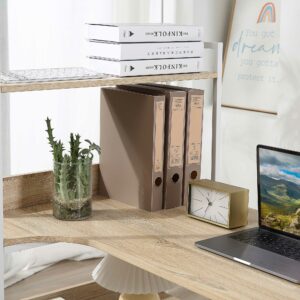 - 2-in-1 design combines a desk with four side shelves, giving you room to work and keep your books and other work essentials close by