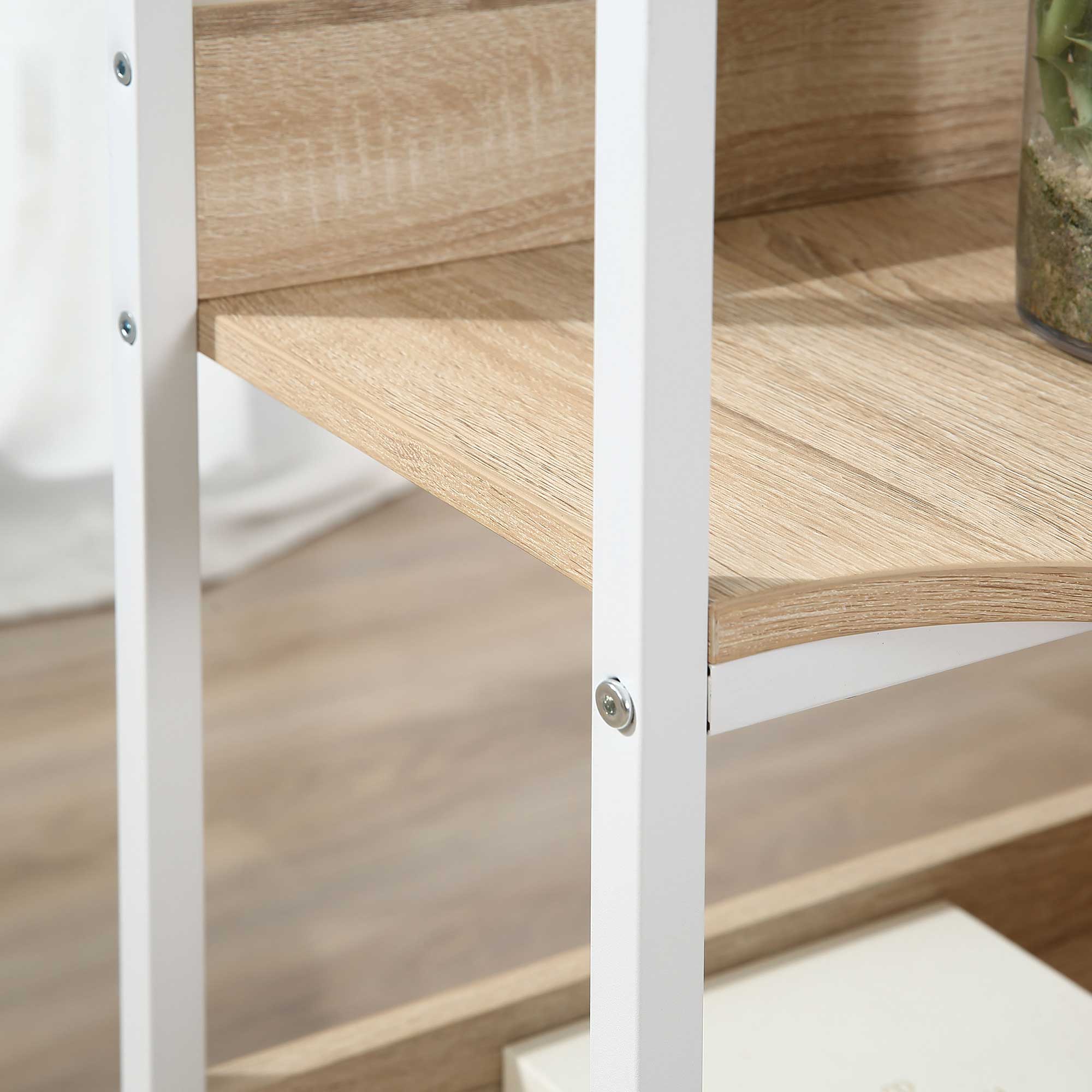 Bring life back into your work space with this HOMCOM computer desk. A minimalistic design, it fuses together a slimline structure with wood-effect shelves so you can dress it up or leave it standing bare as you wish. The metal frame means it stands tall and steady, with a cross bar on the back for extra strength. The desk with shelves is finished with four shelves on the side, giving you plenty of room for books, folders and stationery etc.