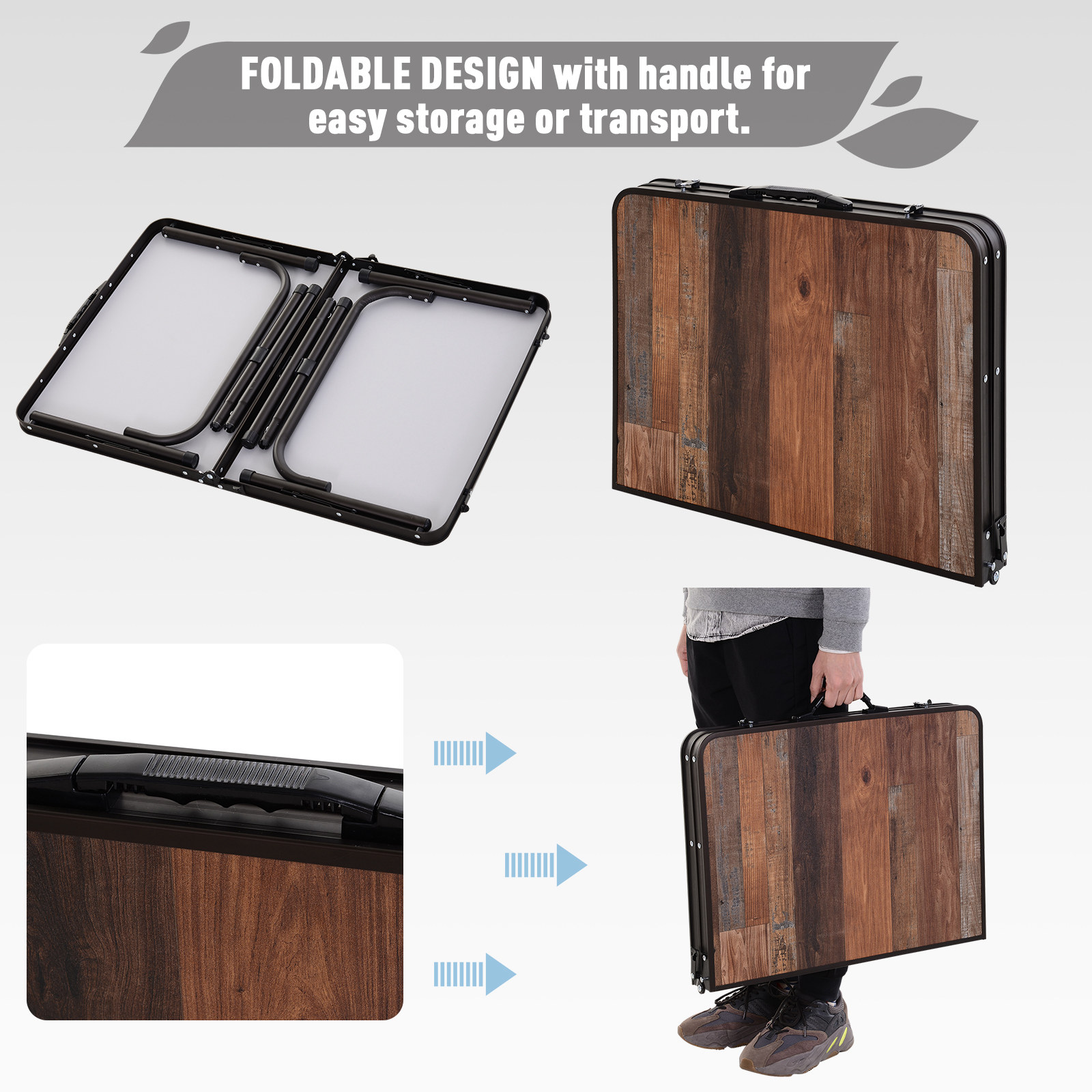 - Compact design which folds in half into a suitcase style, with a carry handle and locks for secure and easy carrying