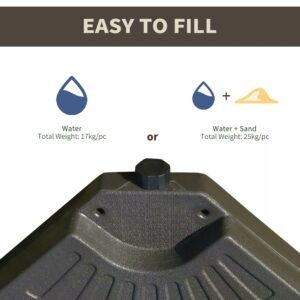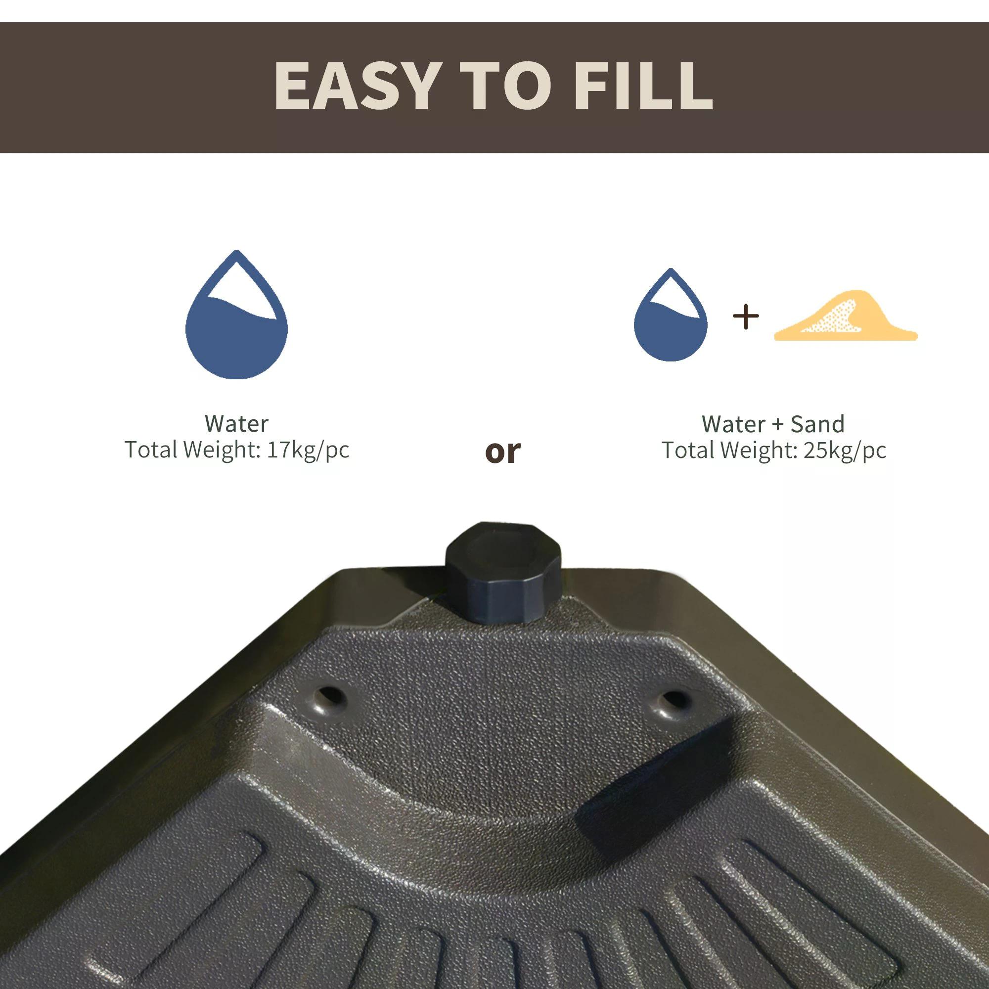 Ensure your parasol is always held firmly in place with parasol weights from Outsunny. Made from strong HDPE plastic, the cantilever parasol base is comprised of four pieces which fit together easily and hold up to 17kg of water weight and 25kg of a water and sand mix. When empty, these weights for parasol are light enough to carry around allowing you to pick your perfect sunshade spot with ease. Whether you wish to use this for the home, coffee shop, or pub, our parasol base weights are suitable for you.