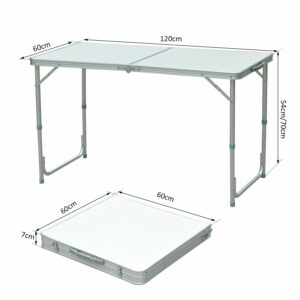 Perfect for tailgating, camping, or any special occasion, the Outsunny Aluminum Camping Table is ready wherever you are. Featuring an EZ carry handle, and it even folds up for compact storage. Made of lightweight aluminum and laminate top this table is easy to tote around, simple to set up, and easy to clean. Use one for a small group or line them up end to end to create a long buffet style table. While great for many uses this table was designed with camping in mind. Lightweight so you can easily carry it long distances, easy to wipe off so no worry about spills, stains, or other issues. If you are in the market for a camping table or just need a good portable table, the Outsunny Aluminum Mini-Camping Table is hard to beat!