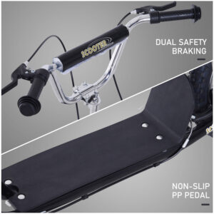 This stunt scooter is the perfect gift for kids and adults. It features a strong steel frame, 16? pneumatic tires (The small size is 16″ front and 12″ rear pneumatic tires), front and rear caliper brakes, height adjustable handlebars, with a vibrant finish. These scooters are ideal for getting out in the fresh air and just enjoying the outdoors!