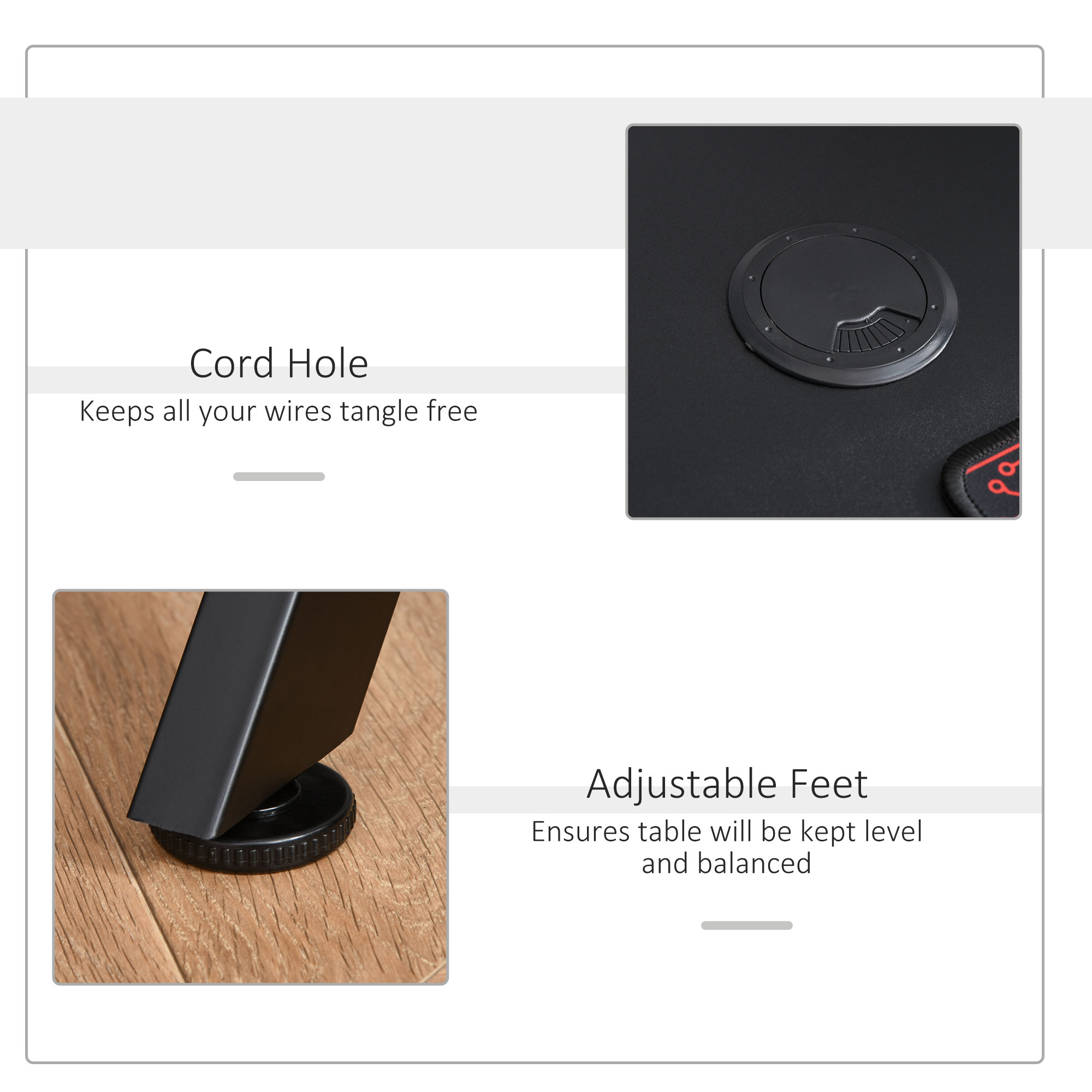 Make your gaming time extra fun with this HOMCOM stylish desk. It features a large main worktop, a cup holder and a headphone hanging hook, giving you everything you need in one spacious spot – meaning you won’t have to move in the midst of a game. The adjustable feet ensures the table is kept level at all times. The perfect piece for your home gaming haven.