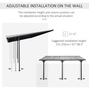 This aluminium-framed lean to pergola by Outsunny is the perfect addition to your outdoors and garden. The polycarbonate panel roof shields you from direct sunlight and damaging UV rays, whilst still allowing the warmth and glow through – giving you the best of both worlds. To complete, why not grab some chairs and tables so you can sit underneath and enjoy the hot days and evenings soon approaching us?