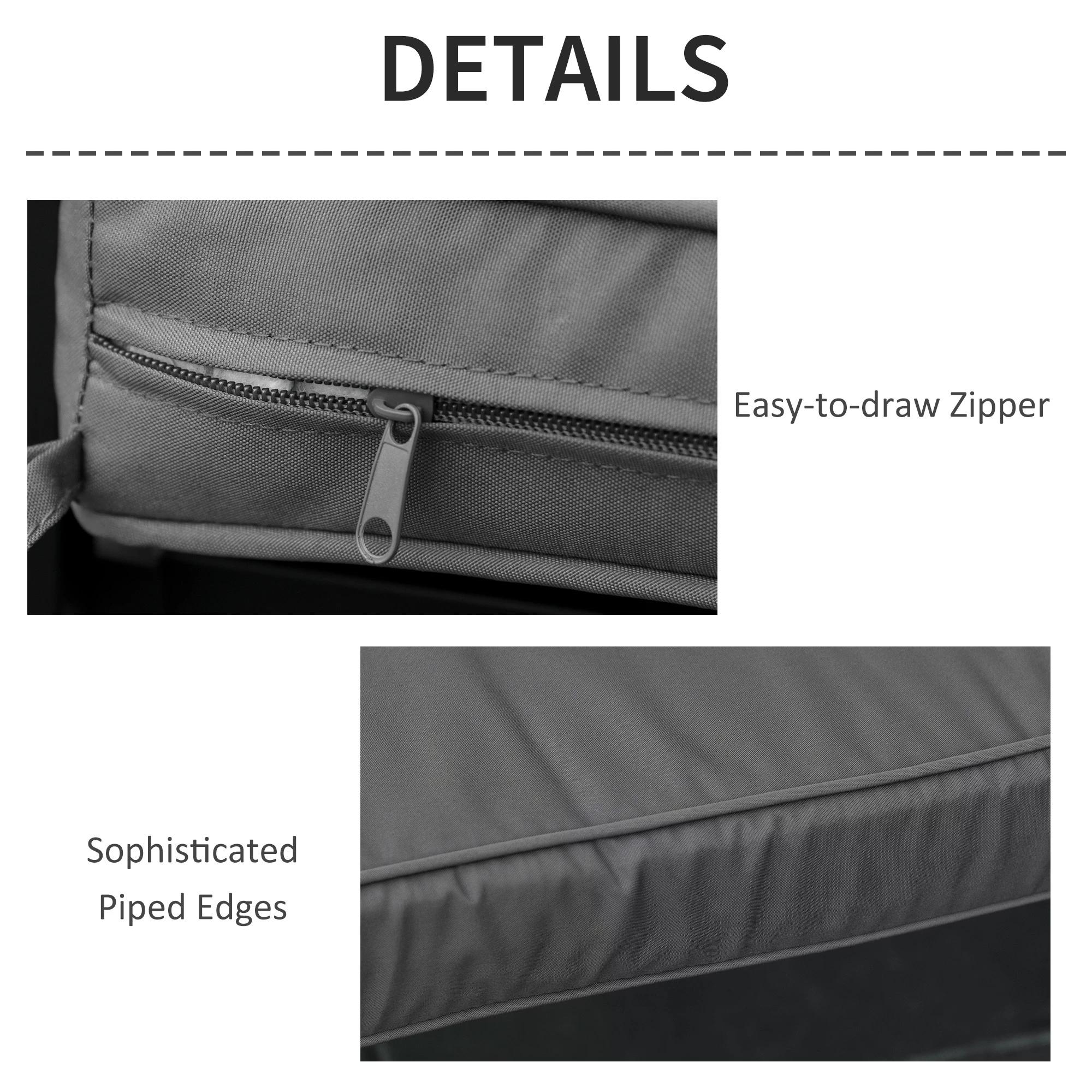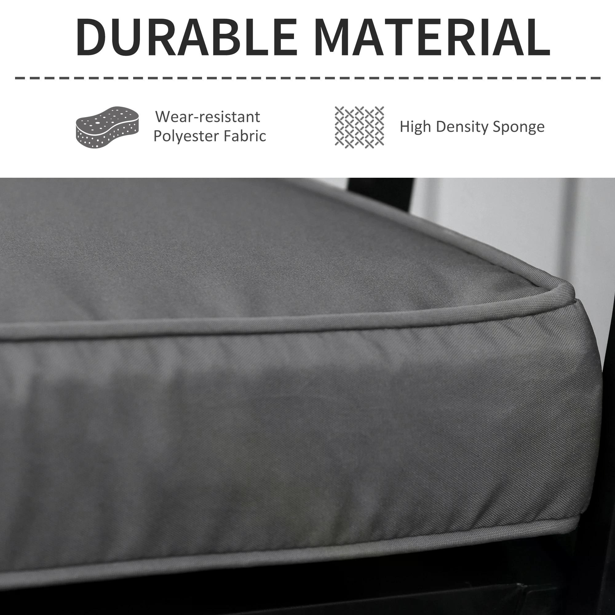 Make hours of uncomfortable sitting outdoors a thing of the past: go for these outdoor seat cushions from Outsunny. Made from polyester to ensure our garden seat cushion is tough and resistant to water and light stains, the cover is made to a 120cm x 50cm size, making it a perfect fit for two-seater benches. And patio bench cushions are filled with thick sponge filling for comfort and finished with two tie fastenings on the top corners to attach safely.