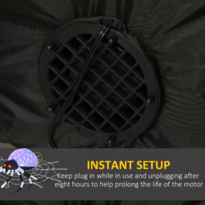 Halloween made extra fun? Yes please. Do it with this HOMCOM inflatable spider. Our garden inflatable is suitable for indoor and outdoor use, thanks to the weather-resistant polyester shell – keep it inside or extend the fun to your neighbours. Inside, there are three LED lights which emit a bright and soft glow – great for creating a fun atmosphere in the dark. Kids and adults are all going to love this inflatable Halloween decoration.