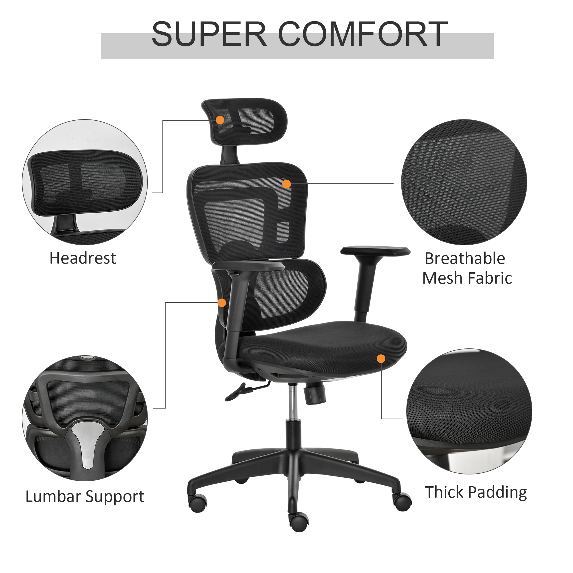 During long working time at home office, you will need a comfortable office chair from Vinsetto. Featuring an ergonomic line design with thick padding and soft mesh fabric, this high back office chair provides breathability. Built-in lumbar and adjustable headrest support keep your head and back supported all day. And you can adjust the seat and armrest height to get the most comfortable sitting position. Use the desk chair swivel wheels, so you can get around the office without getting up.