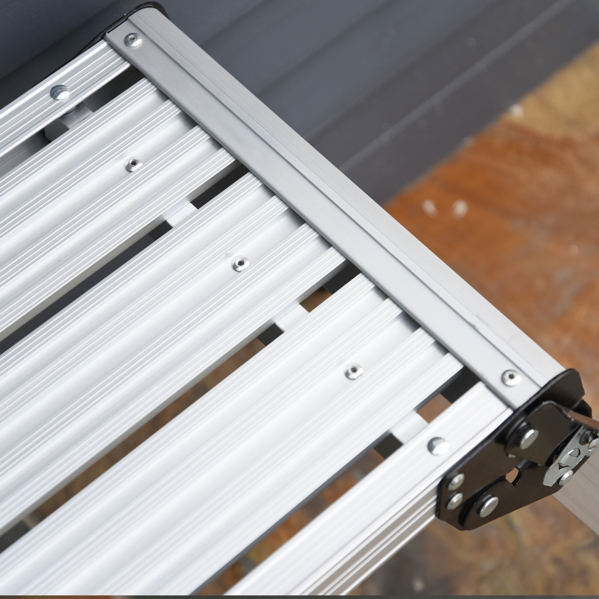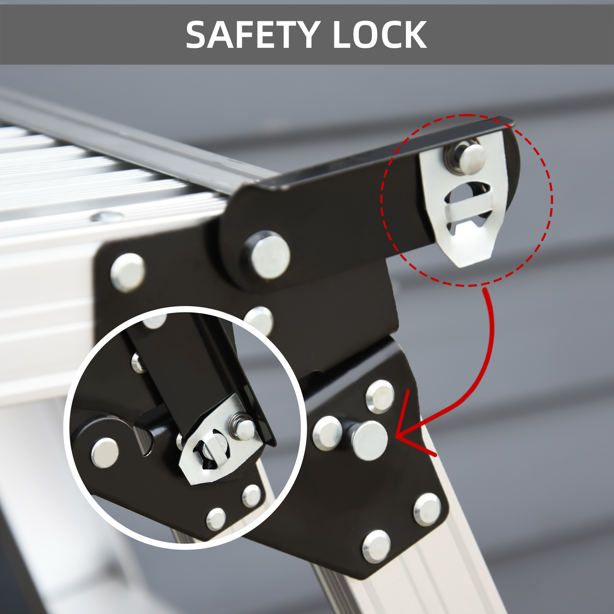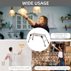 This HOMCOM folding step is a great tool to have around the house. Made from aluminium for strength and support up to 150kg it’s perfect for helping you reach hard and high up places or even for household maintenance and DIY such as painting and decorating. It??s even great as a bench to sit on outside or for help with BBQs and outdoor parties. Finished with pads on the fit it won??t cause damage to your floor beneath.