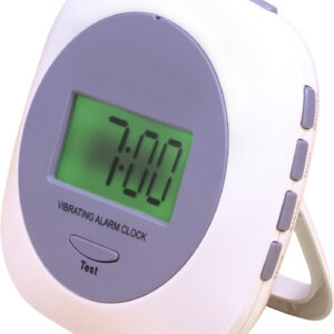 Aidapt Alarm Clock with Strong Under Pillow Vibrating Function. The product is designed for use as standard alarm clock or under a pillow when used on the vibrating function. This make the product ideal for use by the hearing impaired, shift workers or anyone who does not want to wake up their partners in the morning. The product features large easy to read digits, simple time and alarm set up (2 alarms), back light and a strap to help the product stay in place when used under a pillow. Powered by 2 x AA batteries (not supplied) and supplied with easy to read instructions, carry bag and table stand.