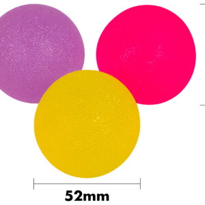 A pack of 3 round shaped hand exercise and stress relief balls. These pleasantly coloured stress balls are supplied in 3 levels of progression, soft 15kg, middle 20kg and hard 30kg.Stress balls can be used to improve finger and grip strength and may be used by athletes, musicians, children and adults. Strength can be built in the hands of those with arthritis and repetitive strain injury or simply use in times of stress as a tool to calm your mind.The set contains 3 balls with different levels of resistance. The soft 15kg ball is ideal for children and can help with fidgeting and anxiety, the medium 20kg is ideal for those with arthritis, repetitive strain or rehabilitation needs and the hard 30kg is most suited to athletes and musicians.