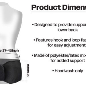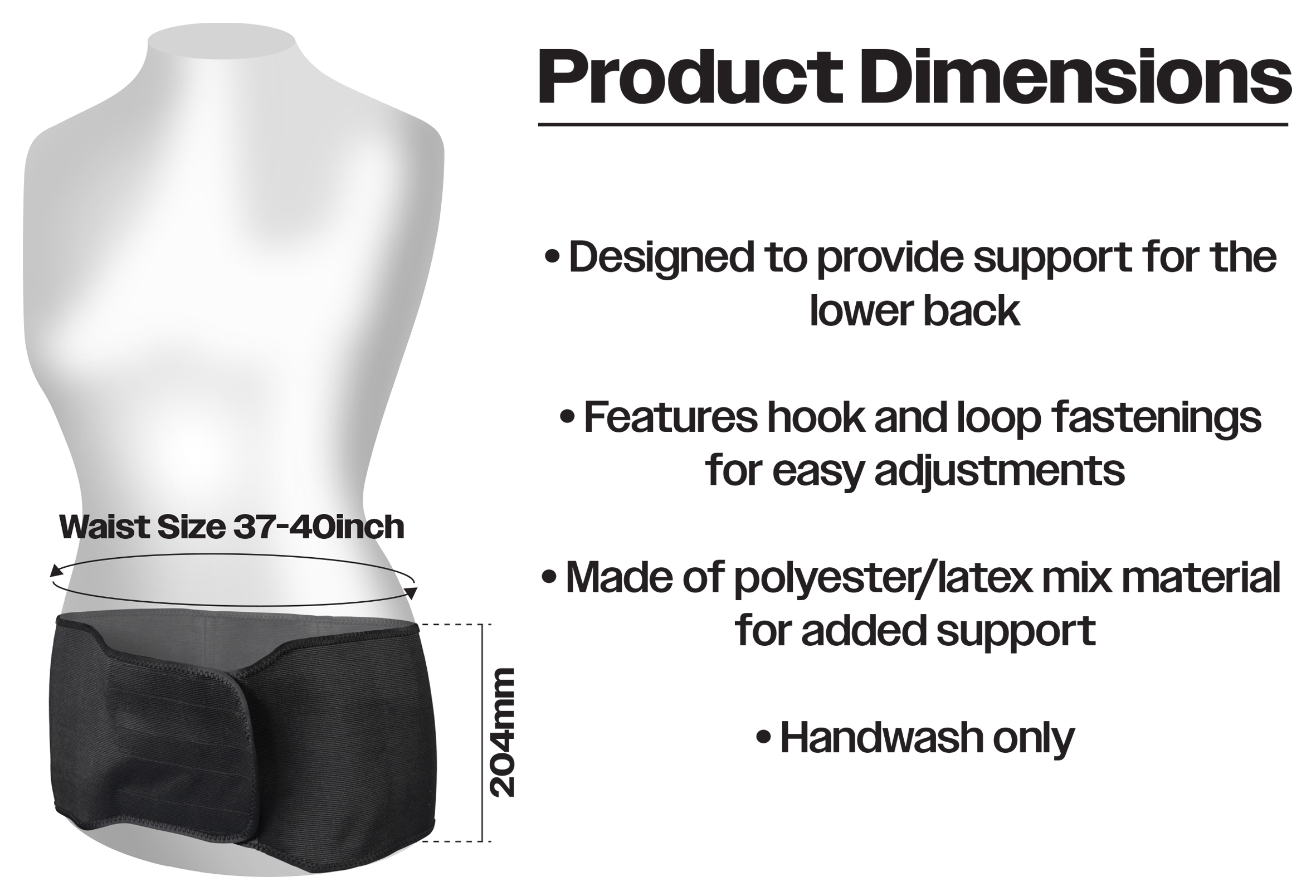 The lumbar support belt is available in three different sizes and comes in a sleek black color. It features a convenient hook and loop fastening system and should be handwashed for maintenance. Made from 70% polyester, 20% latex and 5% PP material, this belt provides excellent support for the lower back.