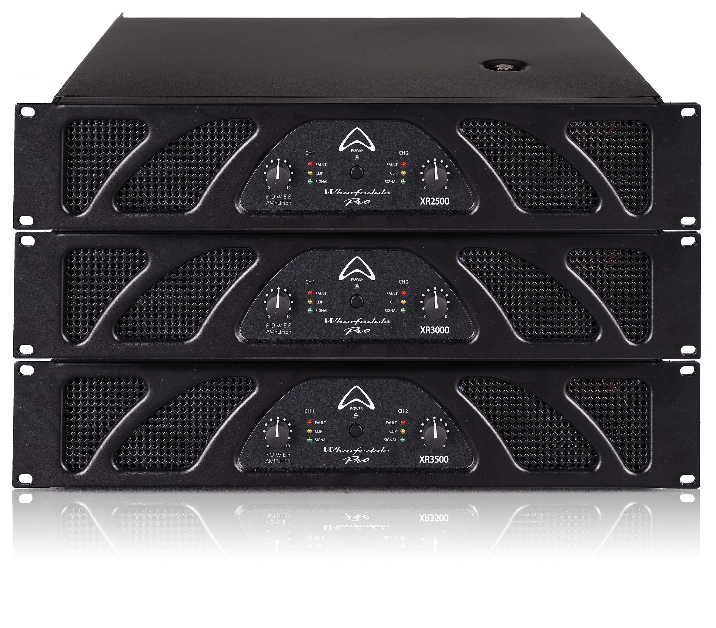 The new XR series of power amps consist of 5 models. The XR3500, XR3000, XR2500, XR1500 and XR800 which deliver 1,000, 700, 500, 330 and 200 watts per channel into 8 Ohm respectively. XR Series is positioned as an affordable amplification line up below the acclaimed CPD series -however practical features have not been overlooked. All models feature XLR thru connectors, making cable management and daisy-chaining easy for installers or when used in flight cases. All models feature full circuitry protection for thermal, over current, DC, output short circuit along with power on/off muting. All models also feature ultra-quiet variable speed fans. Rear panel mode switches allow for selection between Parallel, Stereo and Bridge modes along with input sensitivity switching. Large front air vents and steel construction aid heat dissipation to ensure the long life and reliable performance that comes with any Wharfedale Pro amplifier. Meanwhile, a huge toroidal transformer takes care of any AC power fluctuations. XR amplifiers bring power and performance into a new price category.