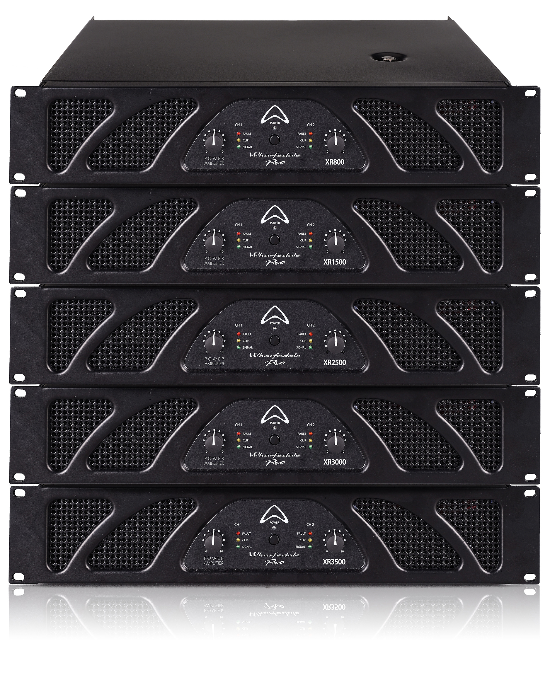 The new XR series of power amps consist of 5 models. The XR3500, XR3000, XR2500, XR1500 and XR800 which deliver 1,000, 700, 500, 330 and 200 watts per channel into 8 Ohm respectively. XR Series is positioned as an affordable amplification line up below the acclaimed CPD series -however practical features have not been overlooked. All models feature XLR thru connectors, making cable management and daisy-chaining easy for installers or when used in flight cases. All models feature full circuitry protection for thermal, over current, DC, output short circuit along with power on/off muting. All models also feature ultra-quiet variable speed fans. Rear panel mode switches allow for selection between Parallel, Stereo and Bridge modes along with input sensitivity switching. Large front air vents and steel construction aid heat dissipation to ensure the long life and reliable performance that comes with any Wharfedale Pro amplifier. Meanwhile, a huge toroidal transformer takes care of any AC power fluctuations. XR amplifiers bring power and performance into a new price category.