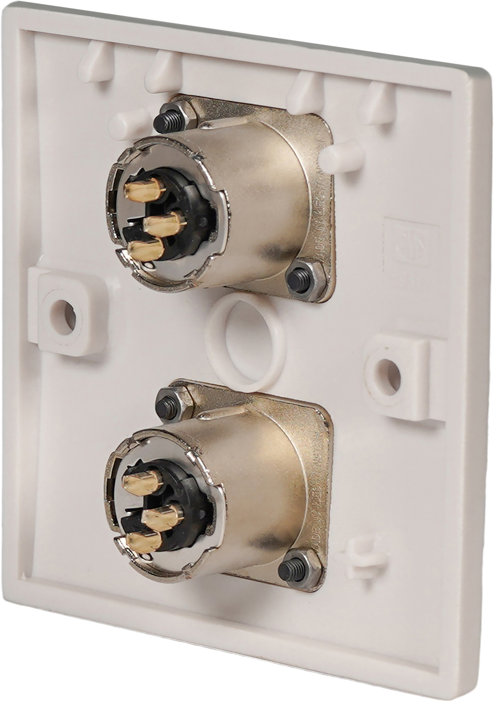 Single wall plate for either flush or surface mounting (back box not supplied). Comes fitted with 2 X Neutrik 3 pin XLR female (NC3FDL1).