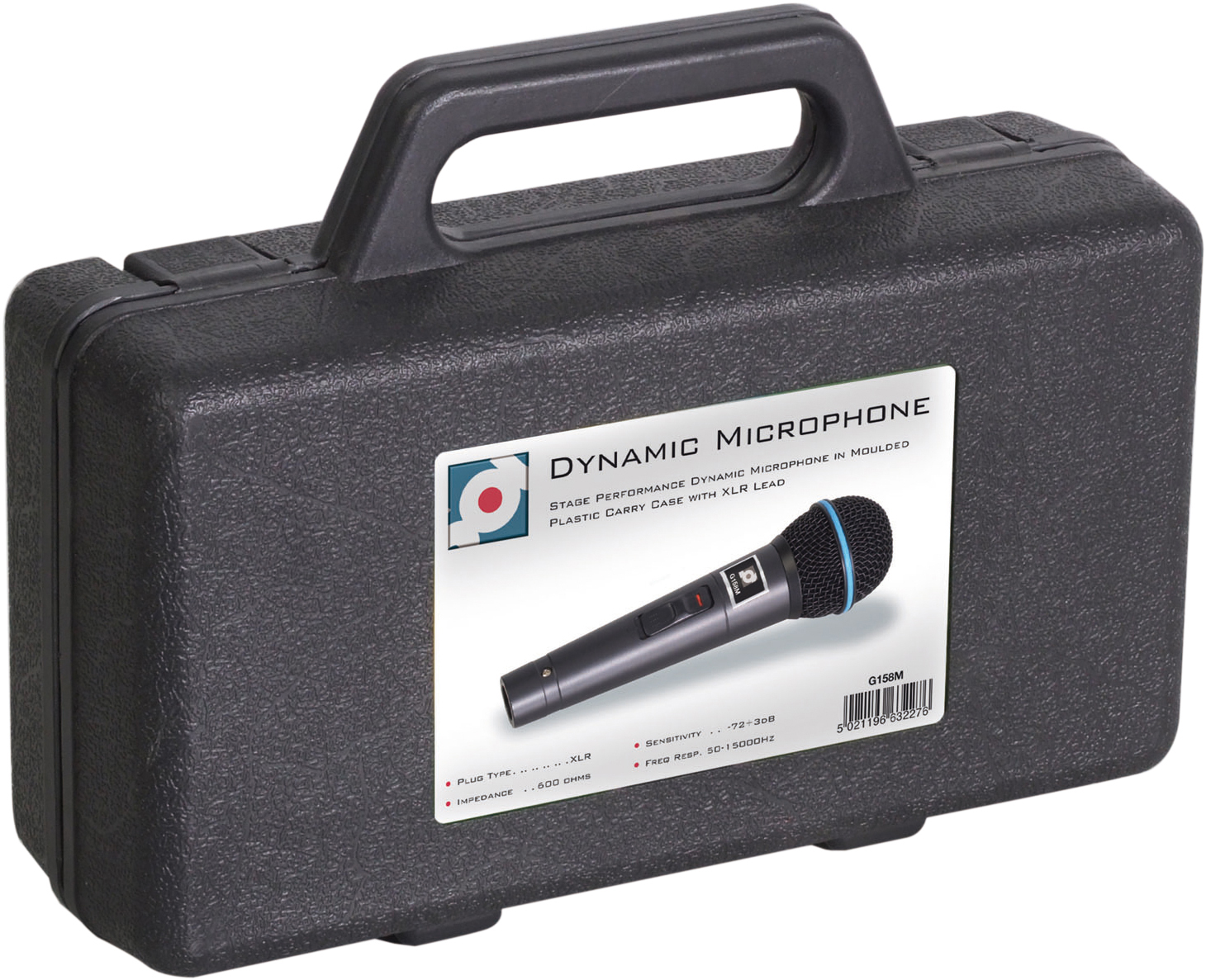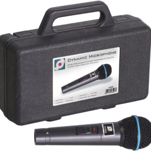 High performance dynamic vocal microphone supplied with XLR to jack connecting lead, anti-pop on/off switch and a robust plastic carry case. Supplied with a 5 metre lead.