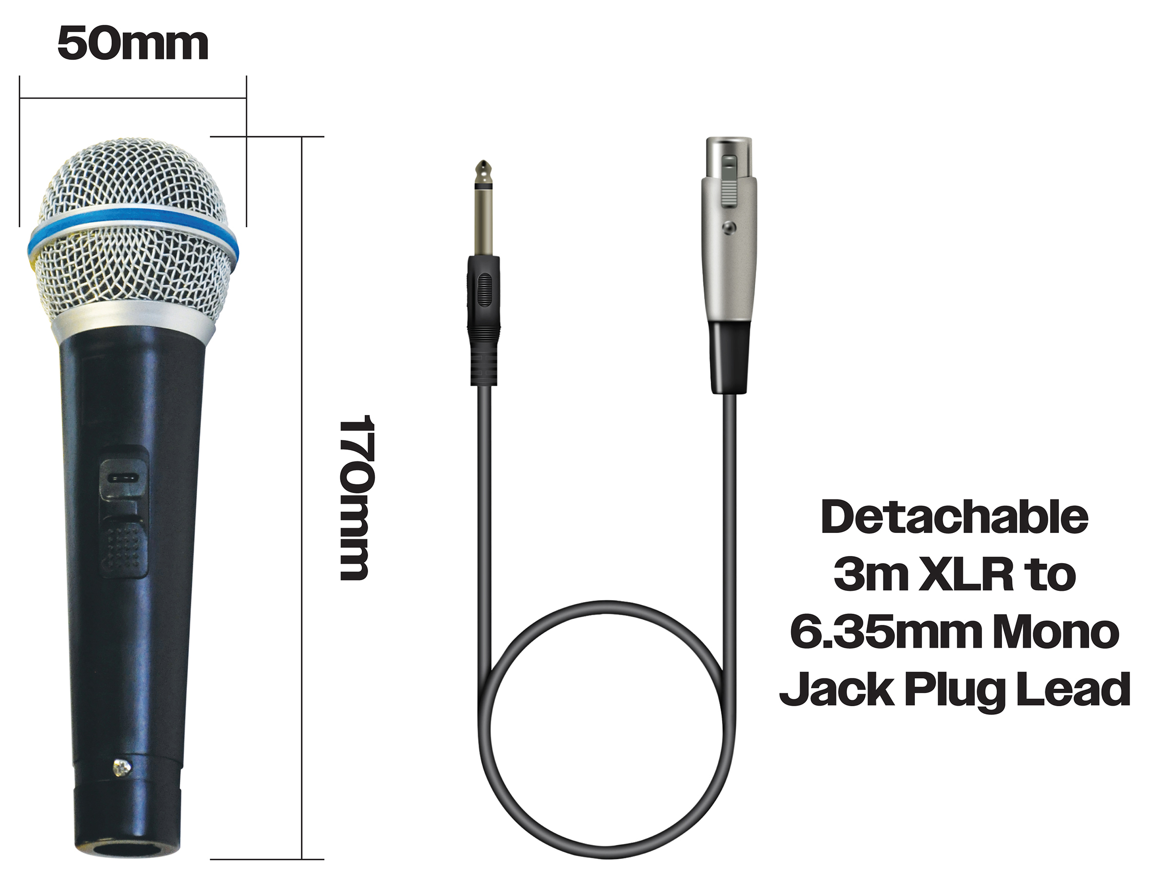 Introducing the Soundlab singing Microphone. Engineered to elevate your vocal experience, this dynamic unidirectional microphone boasts a powerful sound reproduction that captures every nuance of your voice with clarity and precision. Crafted with a durable and resilient design, the microphone features a strong ball-head grill, ensuring longevity and reliability even under the most demanding performance conditions. With its convenient on/off switch, you have full control over your audio, allowing you to seamlessly transition between singing sessions. Designed for versatility, the robust plastic body ensures easy handling and portability, making it perfect for a variety of settings. Whether you’re practicing for auditions, entertaining guests at home parties, or delivering captivating presentations, this microphone is your go-to companion. Equipped with a quality fixed 3m microphone cable featuring a 6.35mm mono jack, you can enjoy hassle-free connectivity to a wide range of audio devices, ensuring seamless integration into your setup. From impromptu karaoke sessions to professional performances, this microphone delivers exceptional sound quality every time. Suitable for both kids and adults, this microphone is the ideal choice for singers of all ages, providing endless hours of entertainment and enjoyment. Elevate your singing experience and unleash your inner performer with the Karaoke Microphone. Your ticket to unforgettable moments and memorable performances.