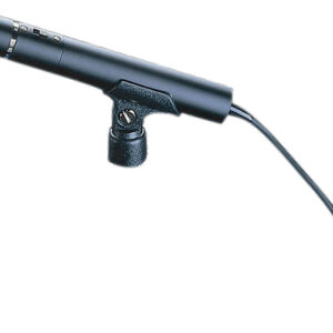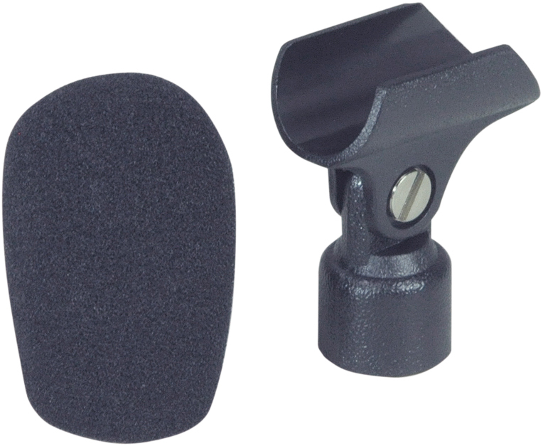 An all metal microphone finished in black and silver, complete with on/off switch, foam windshield and mic clip. It has an integral 6 m lead to a 6.35 mm jack plug and takes one 1.5 V AA battery.