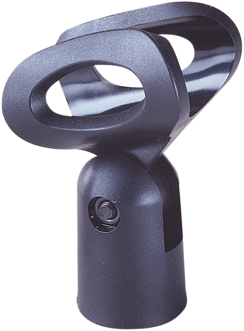 A plastic microphone holder, suitable for electret microphones. With 3/8 B.S.W. and 5/8 27tpi adaptors. High quality soft plastic.