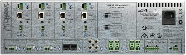 Cloud 3 Zone mixer featuring 1 stereo zone and 2 mono zones, 6 stereo line inputs, remote source selection and level control using optional extras (CDI-S200 serial interface card, RSL-6 or RL-1). Other features include Line 6 priority over other input sources in all zones, remote music mute, 2 microphone inputs (Mic 1 dual function paging/normal mic), microphone over music priority, two band microphone EQ behind front panel facia, 100 Hz high pass filter on microphone input, two-band EQ per zone on the rear panel, front panel gives Mic 1 level Mic 2 level music level and music source selection controls for each zone.