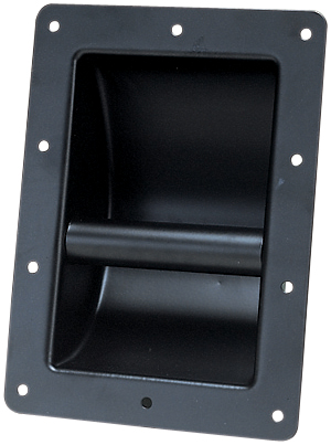 Heavy duty metal recessed bar handle in black.