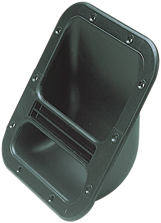 Plastic recessed bar handle in black plastic, with fixing holes.