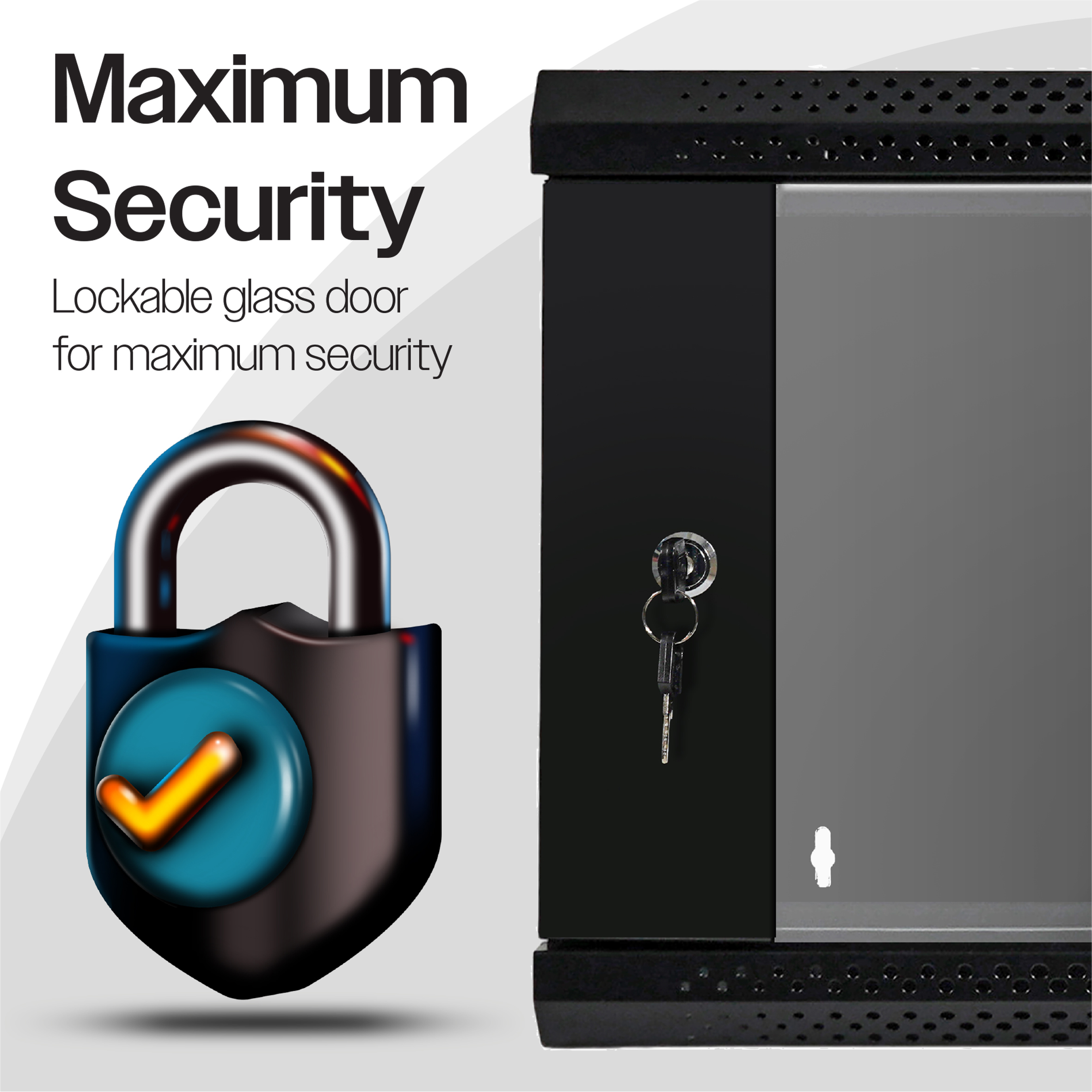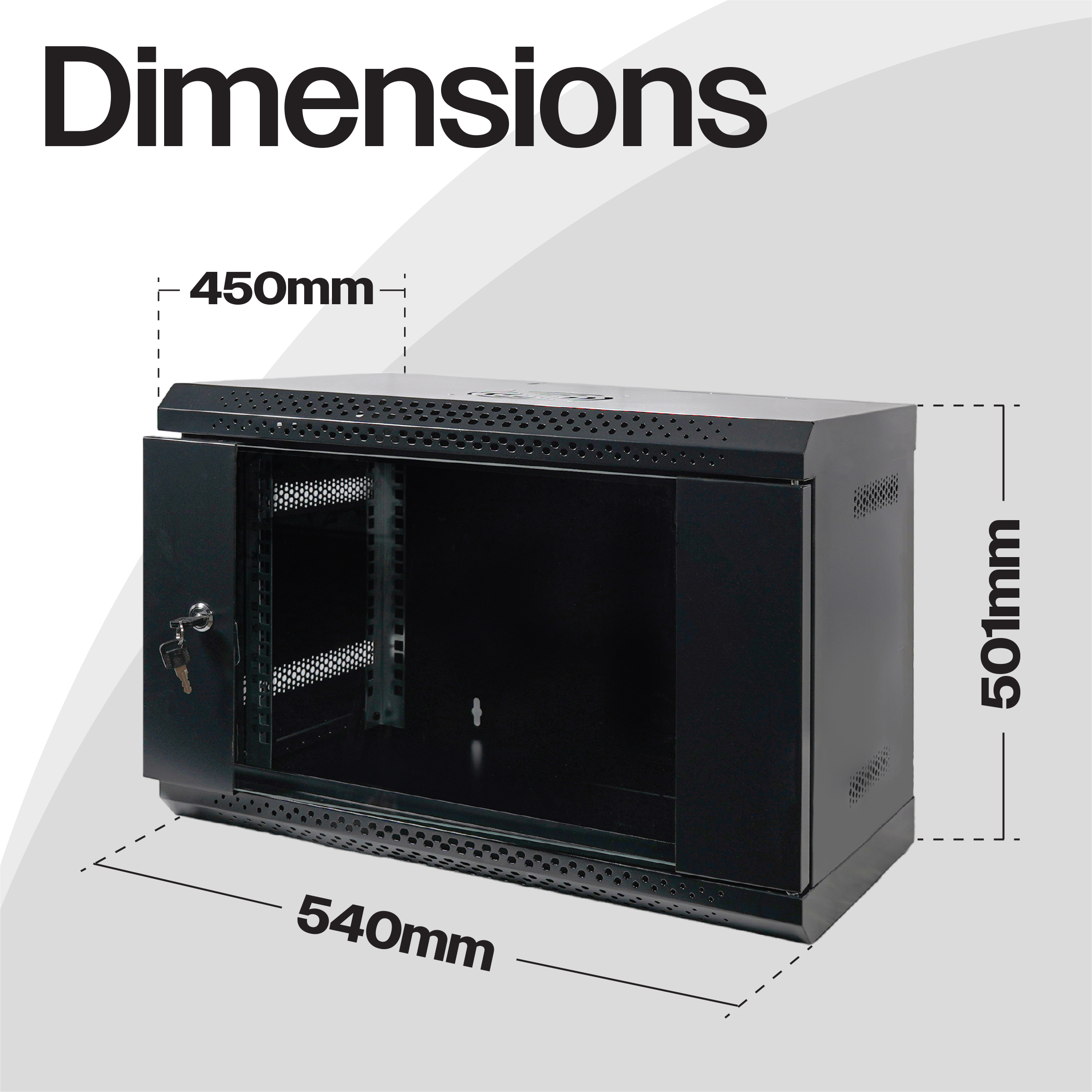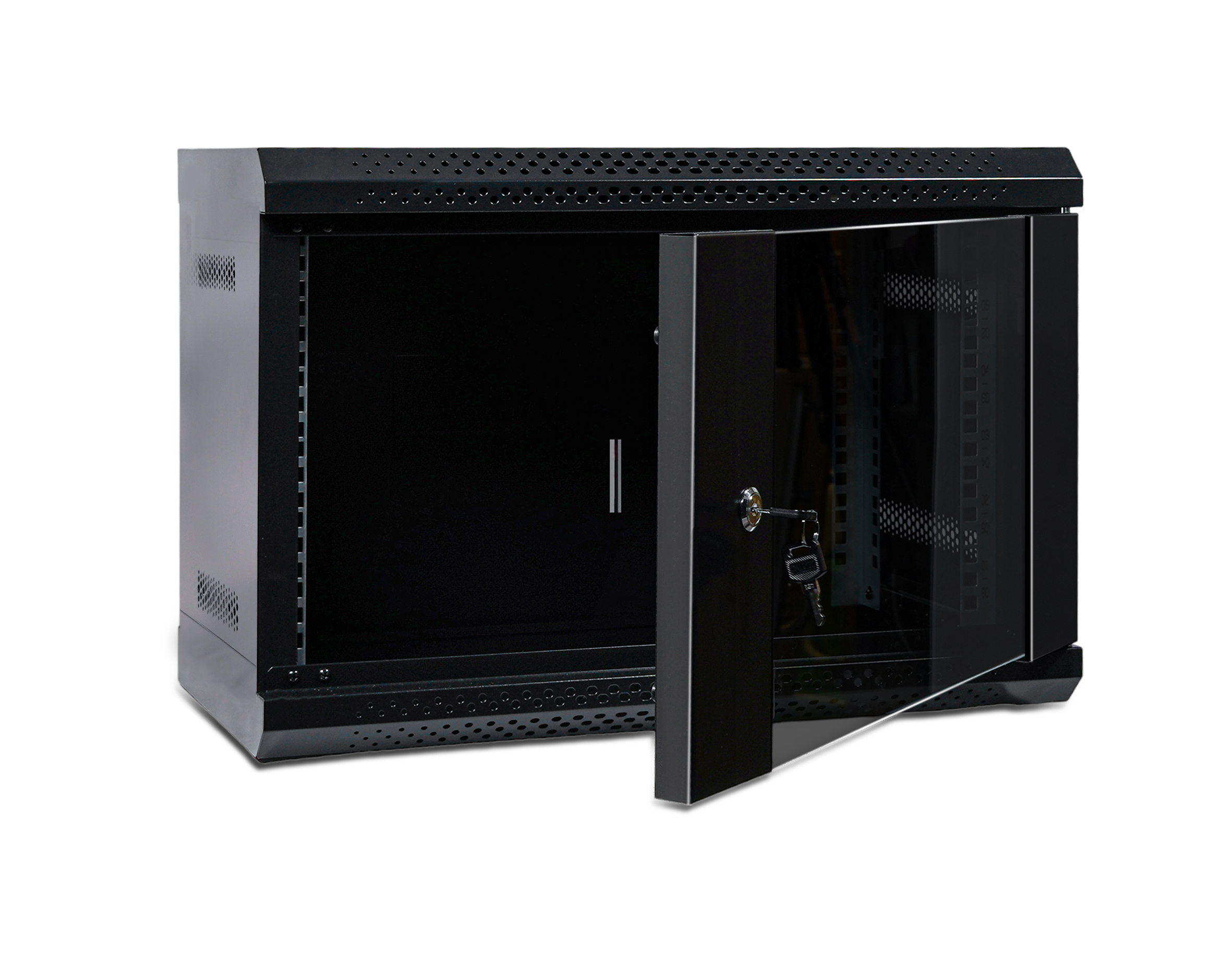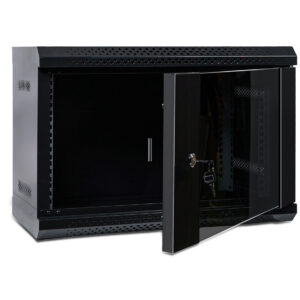 The compact design of the Eagle 19″ Wall Mounting Cabinets makes it ideal for smaller networks and work groups. It has a tempered removable / reversible glass front door and is made of high-quality SPCC- cold rolled welded steel frame steel. The cabinet has adjustable front and rear 19″ mounting profiles and features ventilation slots top and bottom.The cabinet framework is finished in a high quality attractive black powder coating. The cabinet meets ANSI/EAI RS-310-D, DIN-41491, PAIT1, IEC41494, PART7, GB/T3047.2-92 standards. Compatible with 19″ international standard. Metric standards and ETSI standards. A full range of accessories are available to complement our Eagle network/data cabinets.