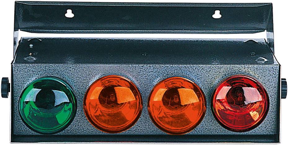 Remote indicator for use with G990. Self contained unit which indicates noise levels to performers on stage or DJs. Green light means sound level is OK, first amber light means noise is getting louder, 2nd amber indicates sound is too loud and red light shows when sound has been cut off by the controller.