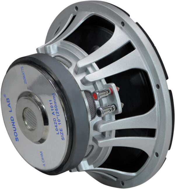 A high powered, rubber edged, low frequency SoundLAB car speaker. Product features 50 mm voice coil, polypropylene cone, cast aluminium chassis and push connectors.