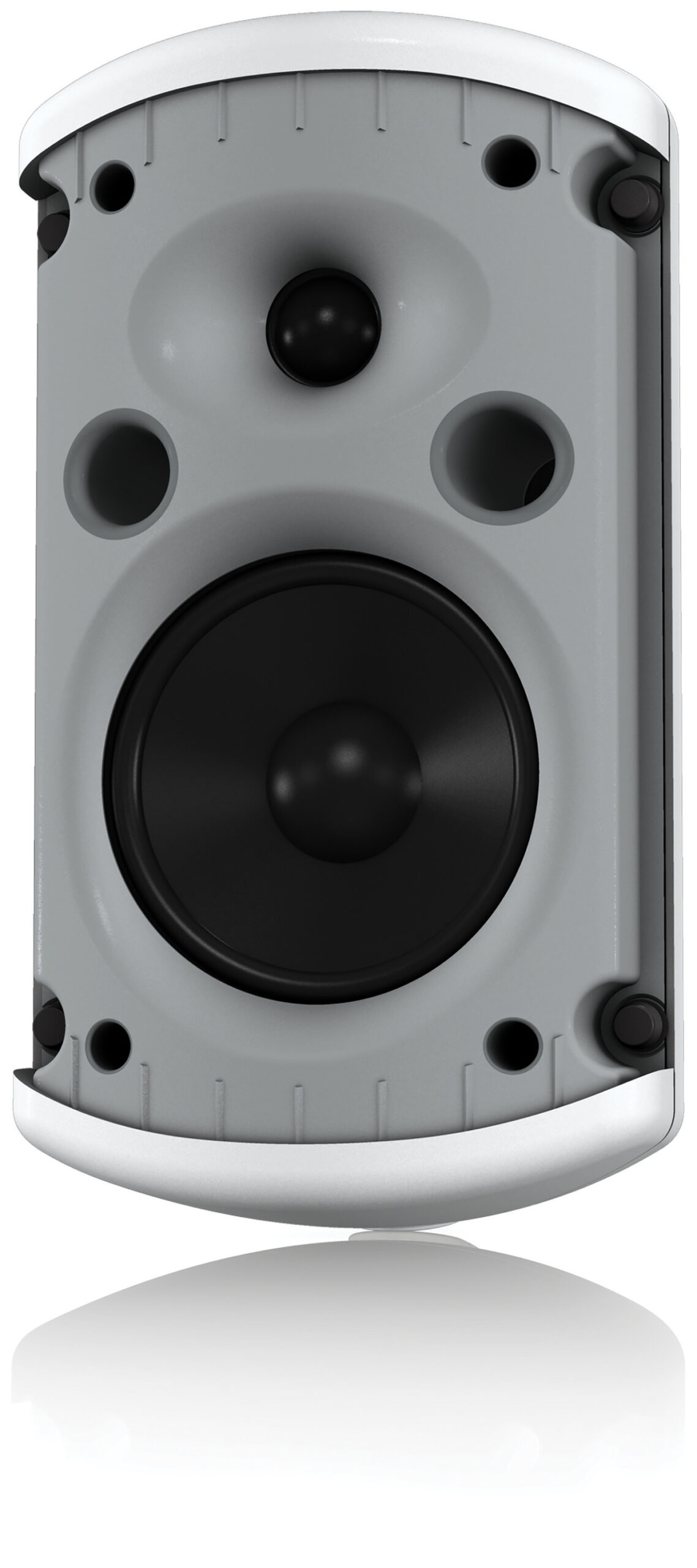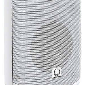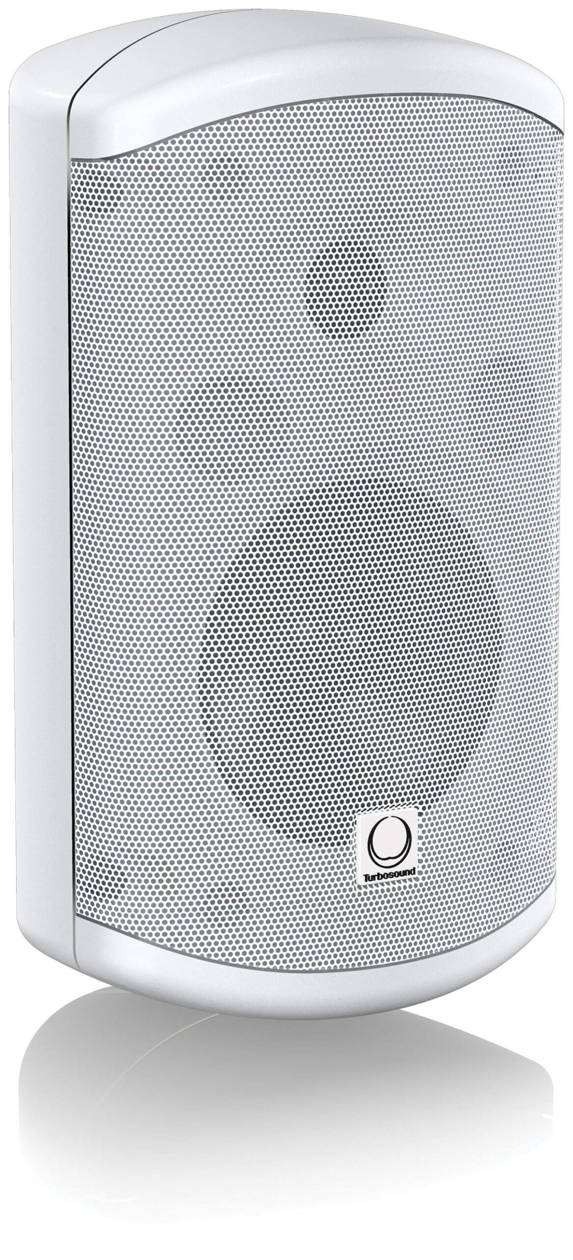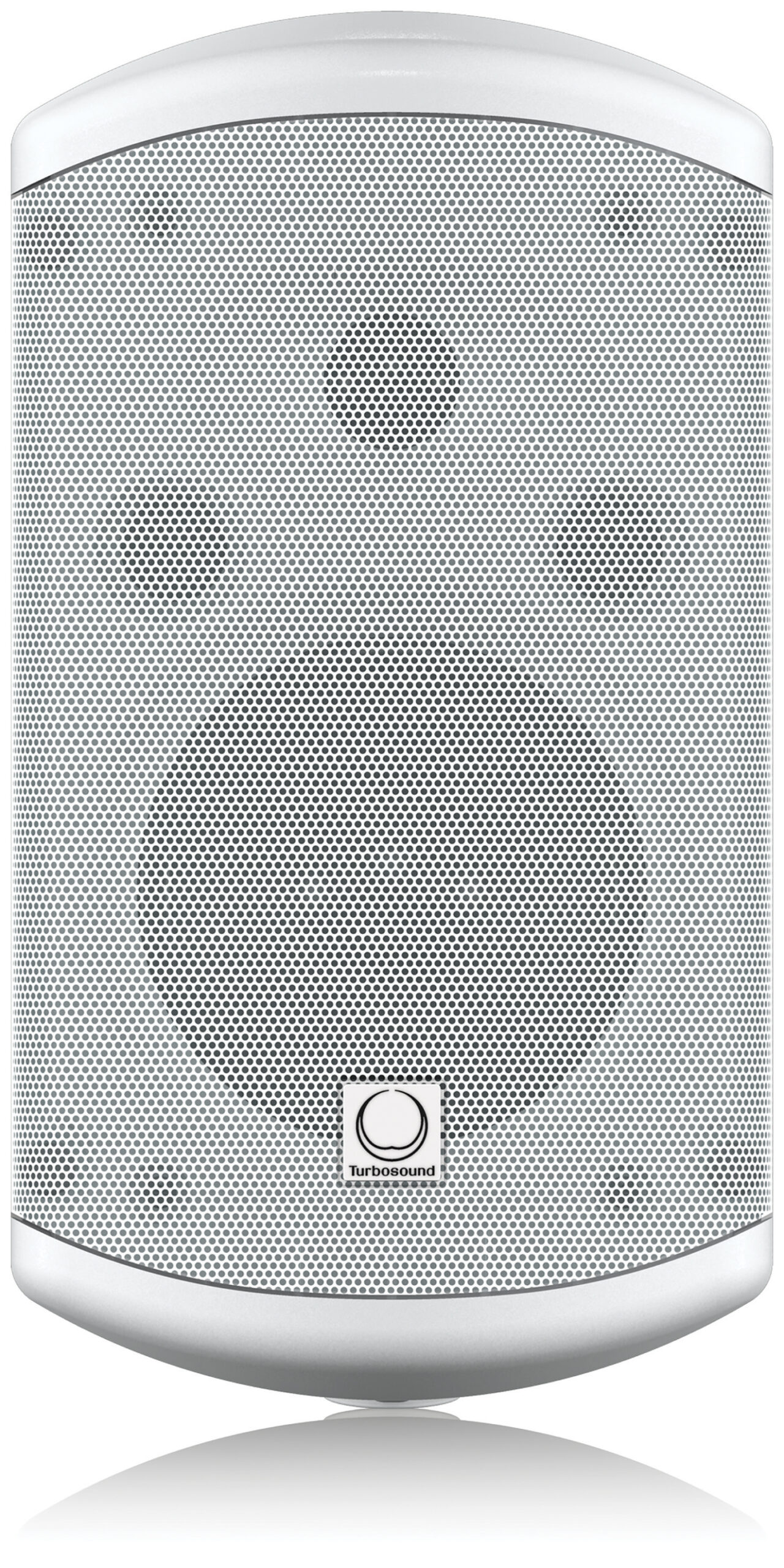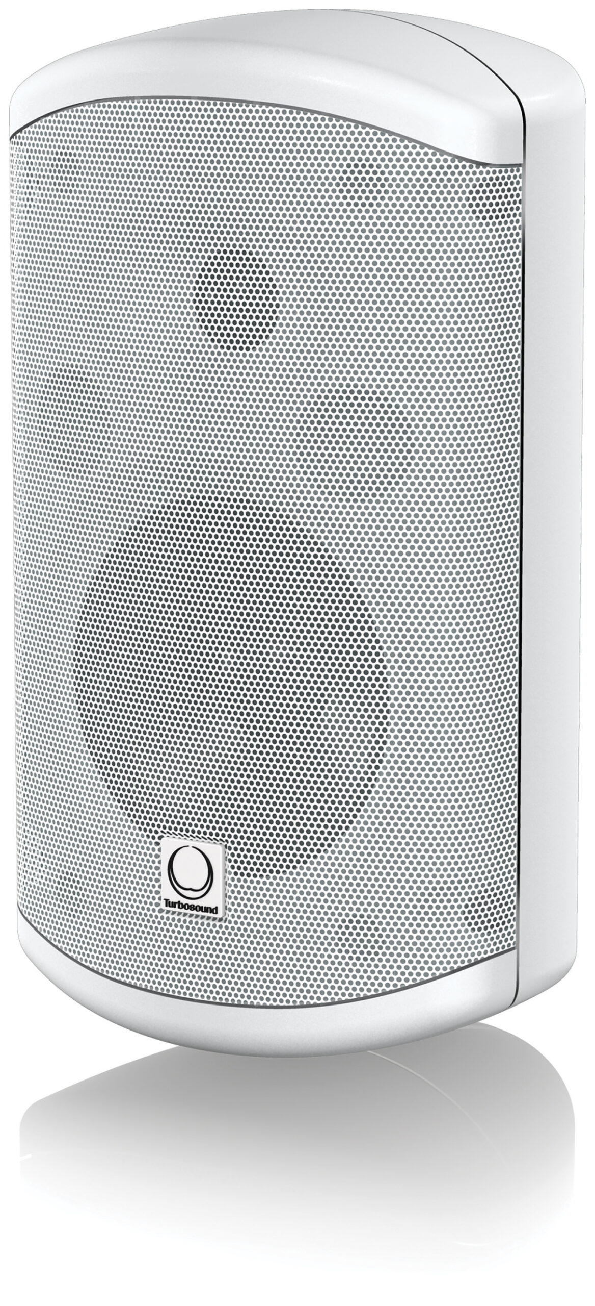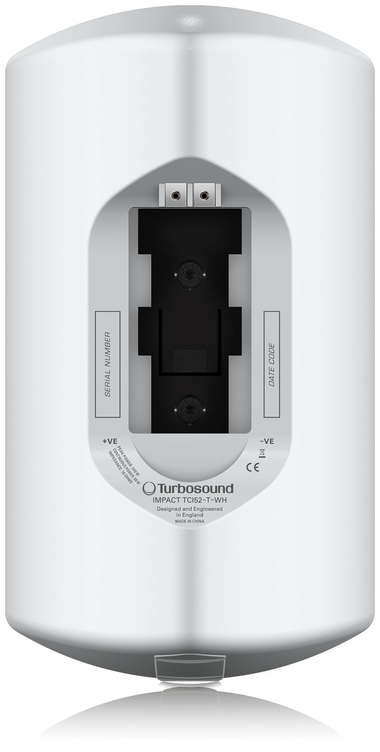 The TURBOSOUND IMPACT TCI52-T-WH is an ultra-compact passive 240 Watt two way full range surface-mount loudspeaker consisting of a high excursion 5 low frequency driver with a high temperature voice coil, matched to a 1 ferrofluid cooled neodymium high frequency driver on a proprietary elliptical waveguide providing wide 120º horizontal by 100º vertical dispersion. The TCI52-T-WH includes an internal line transformer with multiple taps for use in 70 Volt and 100 Volt line distributed systems, and also provides a 16 Ohm low impedance direct input. The TCI52-T-WH is supplied with an adjustable wall mounting bracket which provides the loudspeaker connections as an integral part of the bracket assembly, allowing the brackets to be sited, installed and wired independently of the loudspeakers being available on-site, making the final installation and commissioning of the loudspeaker system a greatly simplified process. The architecturally styled glass filled impact resistant enclosure is finished in semi matt white to fit unobtrusively in any environment. M6 threaded fixings are provided on the rear for use with TURBOSOUND wall and ceiling brackets, and OmniMount* brackets, and a 3/8 threaded insert is provided behind an EPDM rubber cover on the bottom of the cabinet for use with microphone stands as a spot monitor. Priced and sold in pairs.