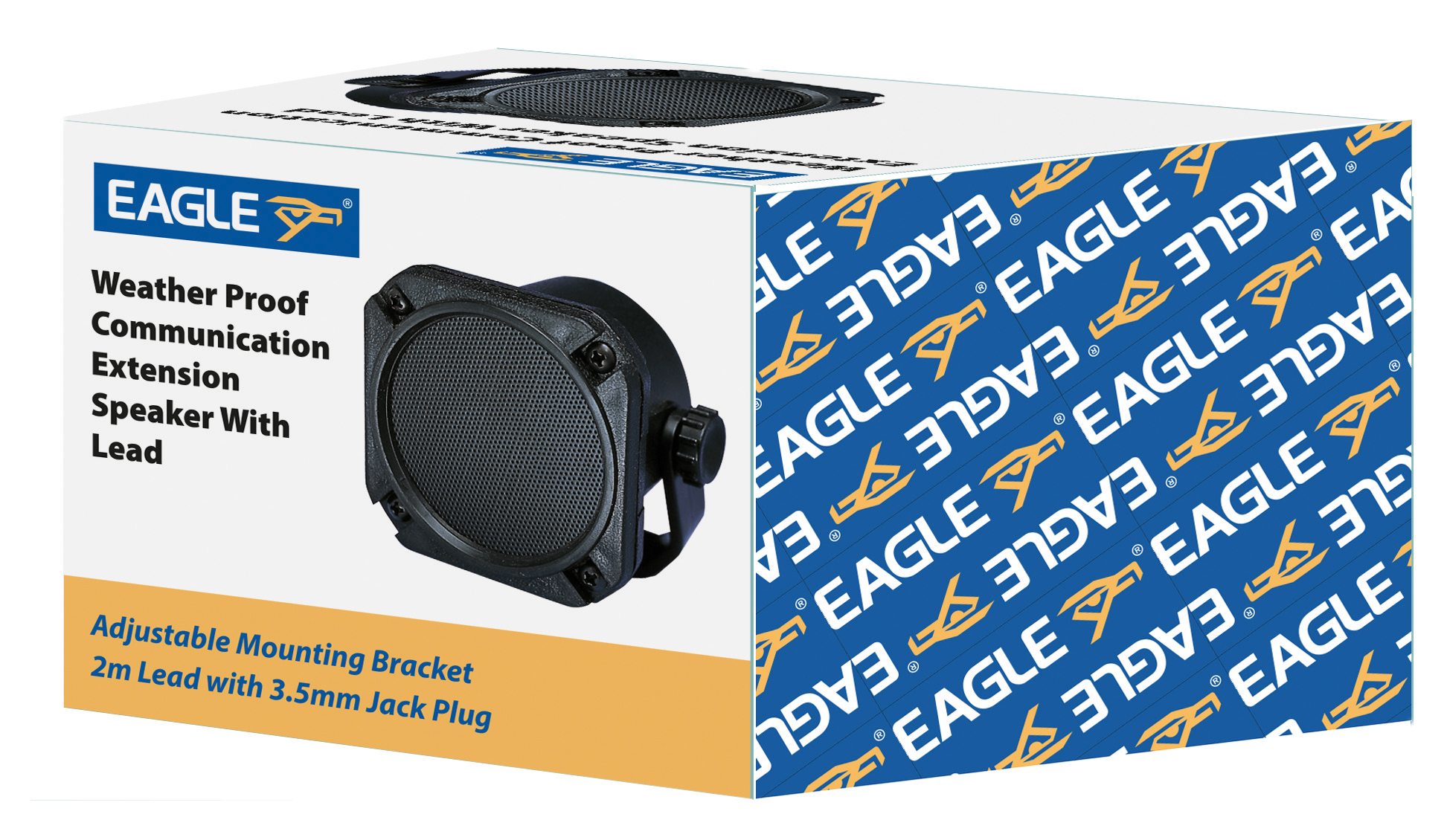 Weatherproof communication extension speaker in a compact, robust, black plastic cabinet. Can also be used as a CB speaker. The adjustable mounting bracket is screw or self adhesive fixing. 2 m lead fitted with a 3.5 mm jack plug.