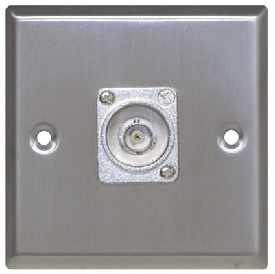 A metal AV wall plate featuring a BNC Socket. Standard Wall Plate size.