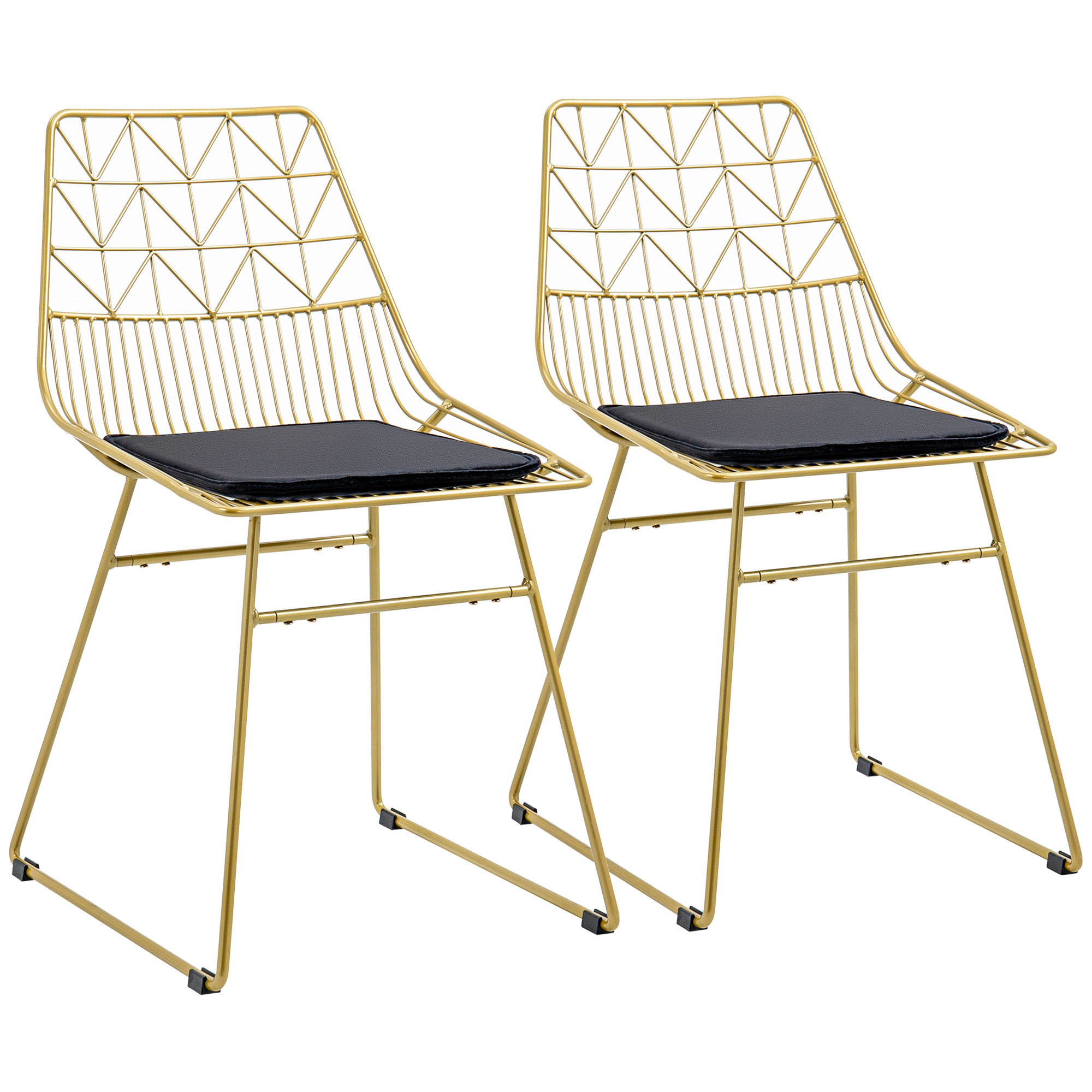 Step up the luxe look in your home – bring in these two HOMCOM tall dining chairs. The frames, made from powder coated steel for a strong and supportive frame, are crafted into a two-pattern cut-out design: a cool design which is sure to bring plenty of character into your space. The gold-coloured finish is glamorous. Complete with a padded seat for comfort.