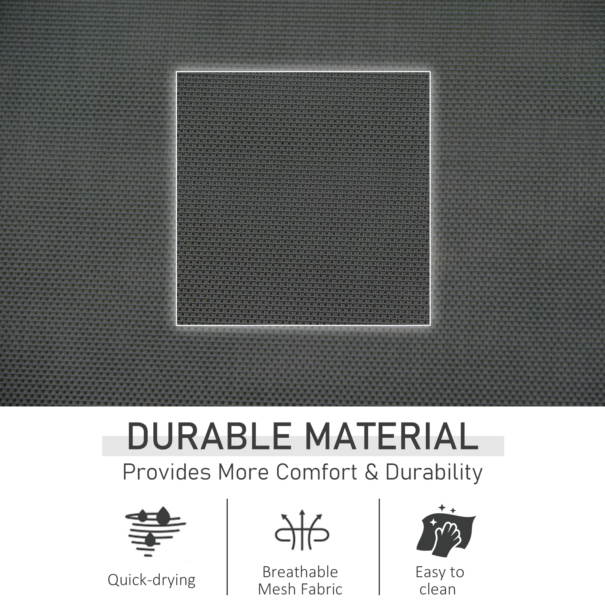 This outdoor rocking chair from Outsunny is a great way to relax outdoors. The curved frame has been made with your body comfort in mind, hugging to the contour of its shape. The seat is wrapped in mesh fabric which holds yours body in place, with a removable top pillow for head and neck comfort. Our patio rocking chair is finished with a removable side pocket, keeping everything you need next to you and rubber pads on the metal frame for protection.