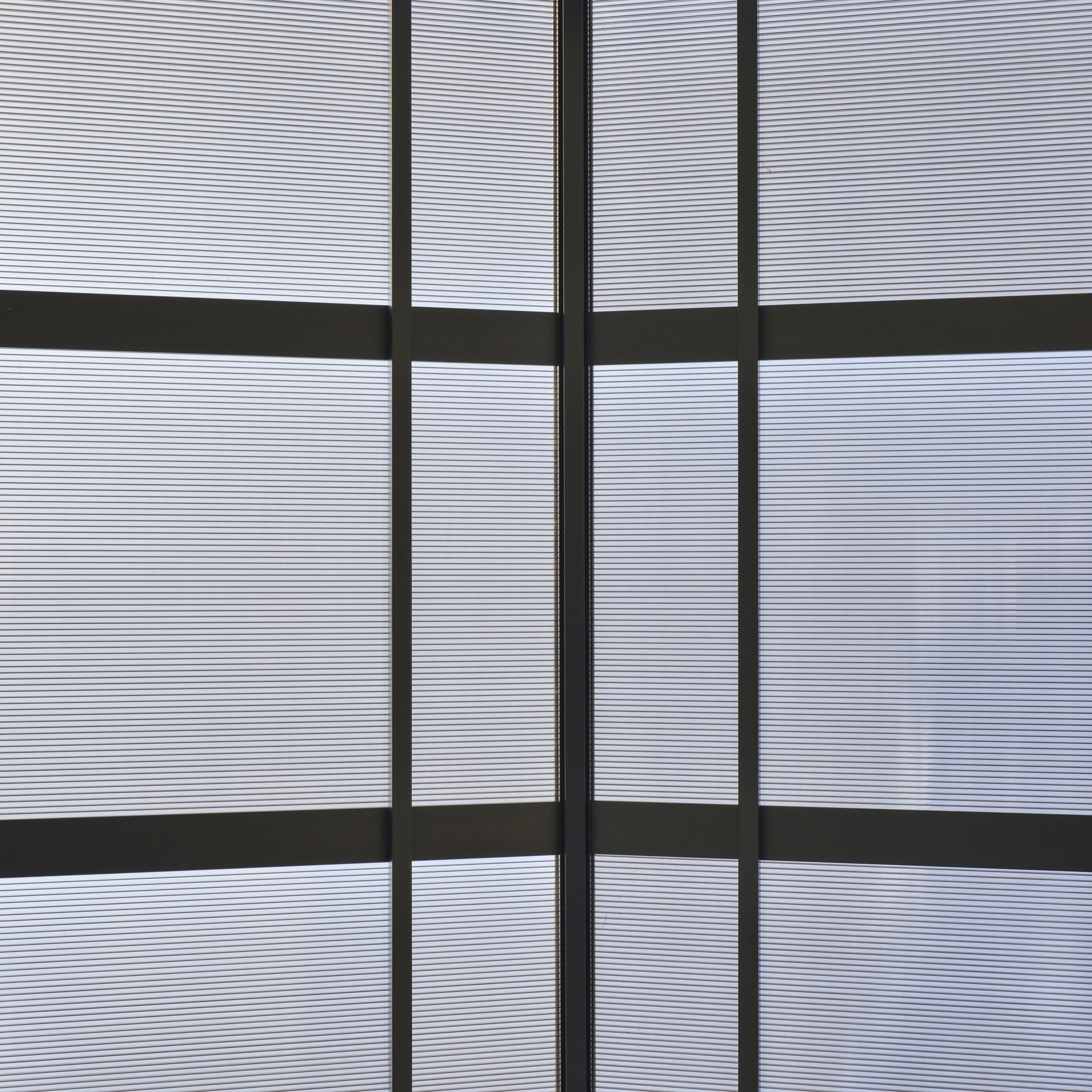 - Polycarbonate roof to protect underneath, sloped for water to roll down to the ground