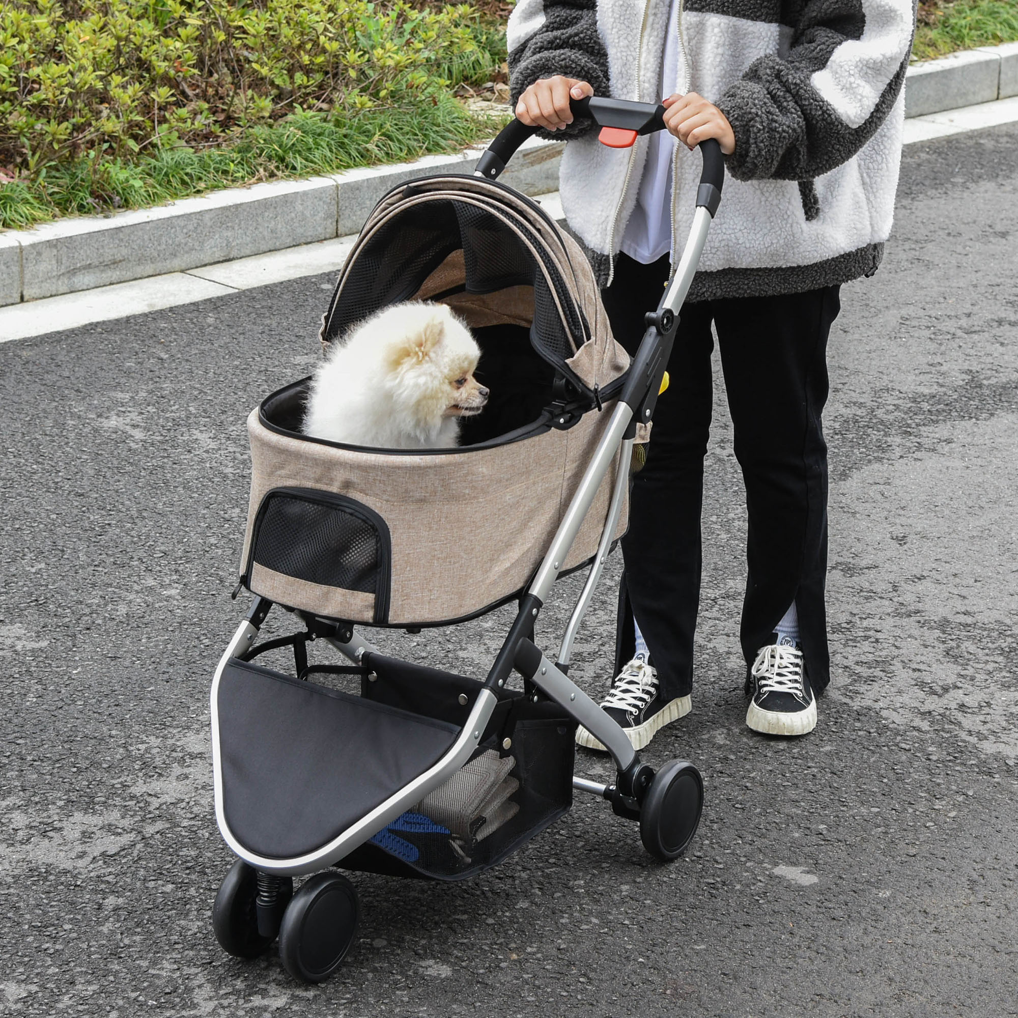 In need of a great dog buggy to take your furry little friend along with you? Then check out this PawHut dog stroller! This uniquely designed cat stroller is perfect for the pet owner on the go: the pet pram has an interesting design that can be converted as a carrying bag. Furthermore, small bags and a basket are included which allow you to put your and your pet supplies, and the easy roll wheels mean it can go anywhere you can.
