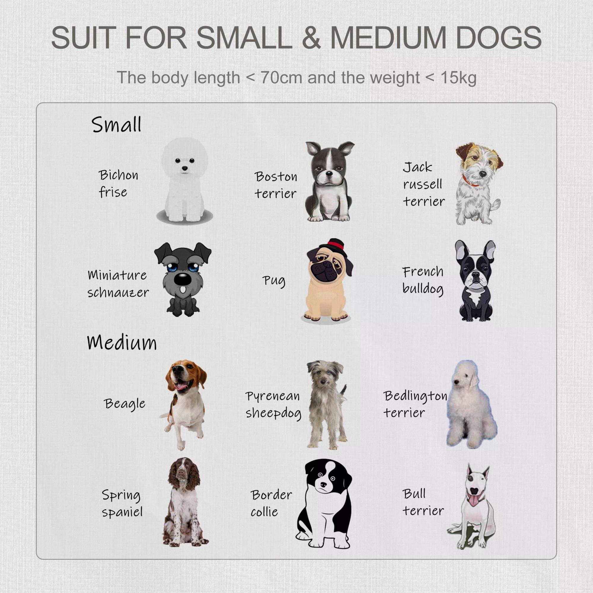 - Suit for small and medium dogs within 15kg and length less than 70cm