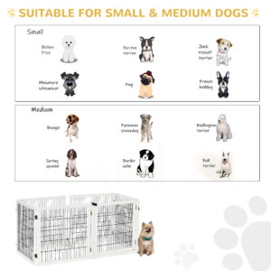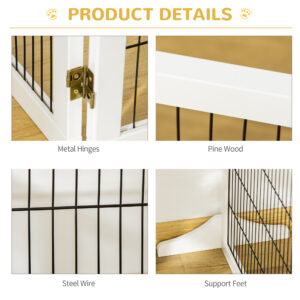 This PawHut safety gate is an efficient way to keep your pets in one area, whilst its all-white design adds a decorative touch. It’s freestanding and has six flexible panels secured with strong hinges, which can bend into different shapes ?? perfect for different sized areas. Pets can easily pass through the middle and it features a safety lock, so they remain put. The two support feet keep this fence upright and balanced – a secure way to stop pets from going where they shouldn’t.