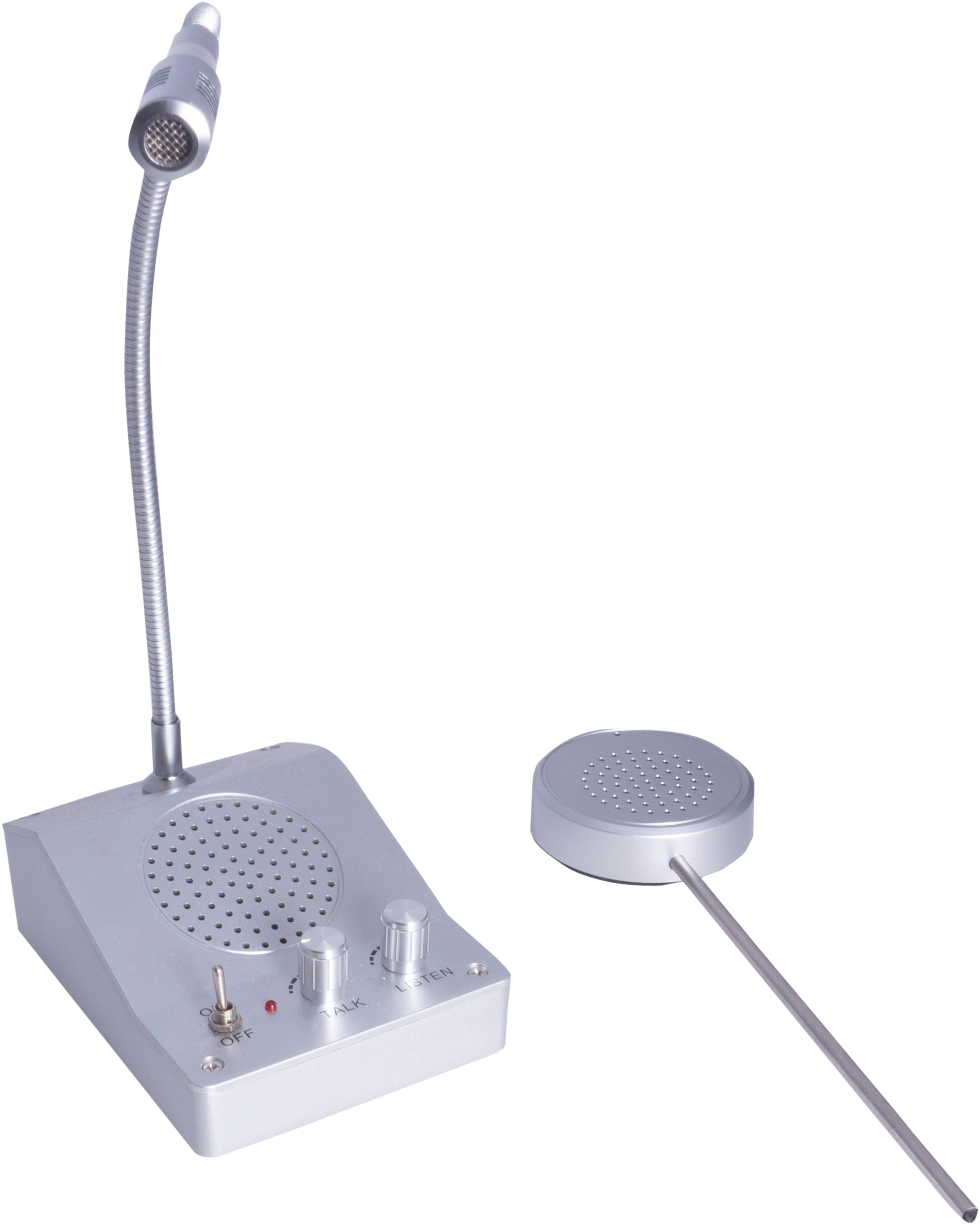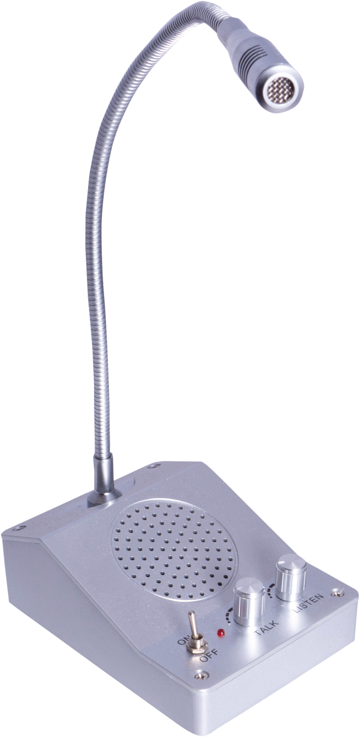 The Eagle 2 way talk through glass intercom is ideal for use in shops, security lodges, receptions, post offices, petrol stations and banks; in fact anywhere that conversation needs to take place but communication is difficult because of security / health screens. The intercom is fully automatic, hands-free and two-way, with a desk mount base station and condenser goose-neck microphone on the main unit. The main unit has a high quality speaker and the volume on both the inside and outside speaker can be adjusted. The unit has a special microcomputer voice processing circuit to help solve the problem of echo and feedback and adjustable internal and external mic volume controls, the unit has been designed for long term use. Supplied with a plug in 12v power supply