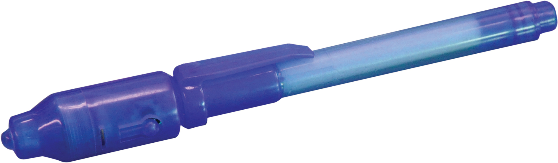 The Security Pen with UV Light features a long life UV pen for invisibly marking items and a built-in LED UV reader for viewing. The Security Pen is ideal for making a mark that is invisible to the naked eye, until the built-in UV light (or another UV light) is used over the area. The UV Light can also be used to check for watermarks on bank notes and other documents, to invisibly mark documents or bank notes or to write secret messages. Batteries included. Note: This product has been tested for reliability on the bank notes listed on the packaging and we are confident that it is effective. We cannot, however, be held liable for any loss or damage which result from using the product.
