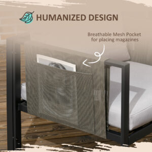 Outsunny 4 Piece Metal Garden Furniture Set with Tempe Glass Table, Patio Set Loveseat, Single Armchairs with Padded Cushions, Light