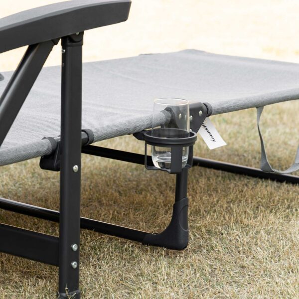 This sun lounger from Outsunny is perfect for relaxing in the sun for hours on end. The seat, made from breathable mesh fabric, comes with a padded headrest to keep your head comfortable and supported. An aluminium frame, with four long legs for plenty of support, the back can be set to seven different positions. A side cup holder so you can enjoy a nice cool drink without having to move. And when done, you can fold this lounger up to store easily.