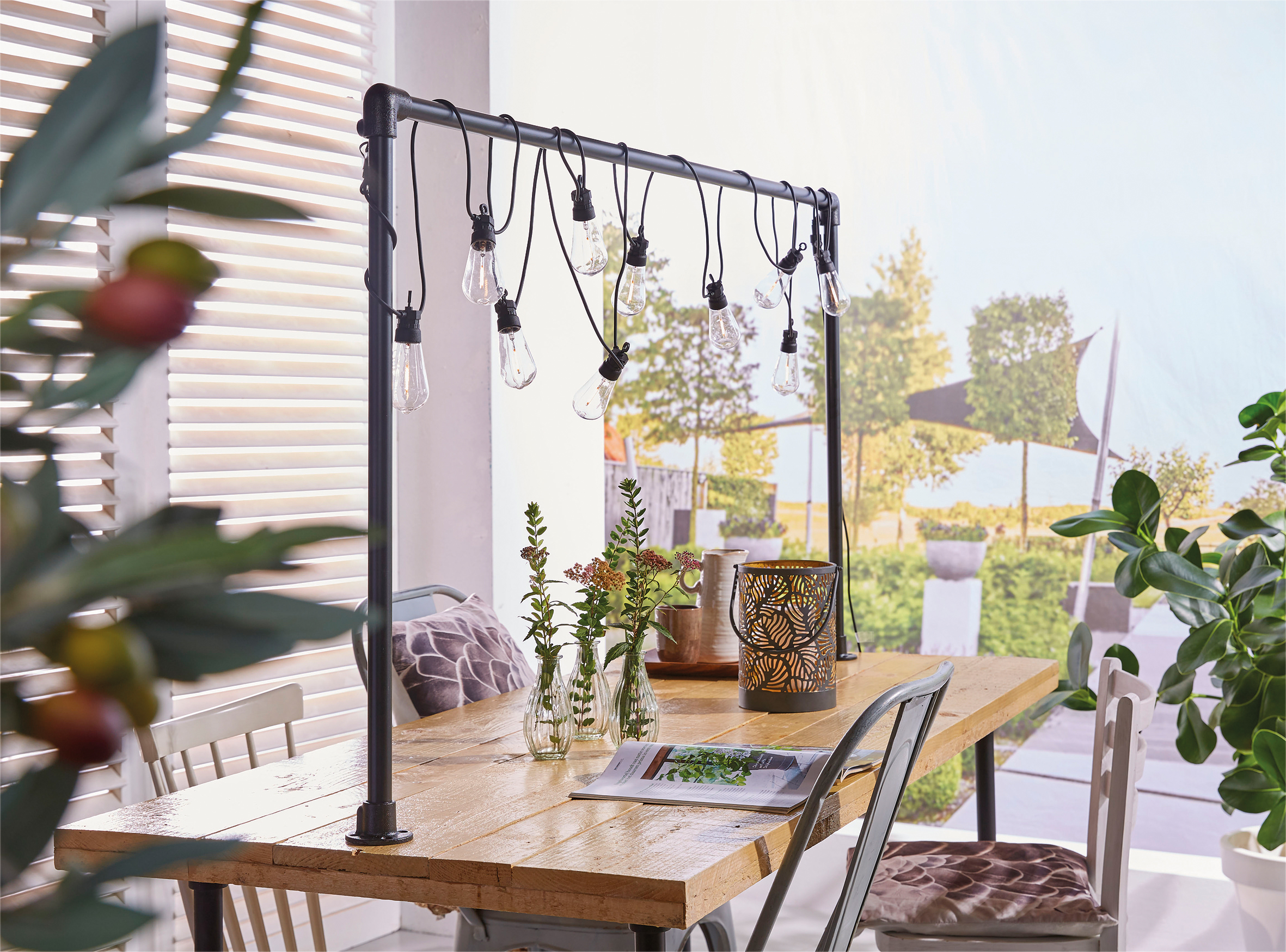 This cozy party lighting from Luxform is equipped with an ultra safe 24V transformer. The set is supplied with 10 clear T50 bulbs which offer a super stylish look thanks to the filament bulb. A bonus feature is that it s connectable with all the other sets of lights from this range, up to 3 sets of lights can be connected to the one supplied transformer .A 5 metre extension cable is also included with a 6w 24V transformer. Bulbs are placed every 50cm with a very generous total cable length of 10 metres.