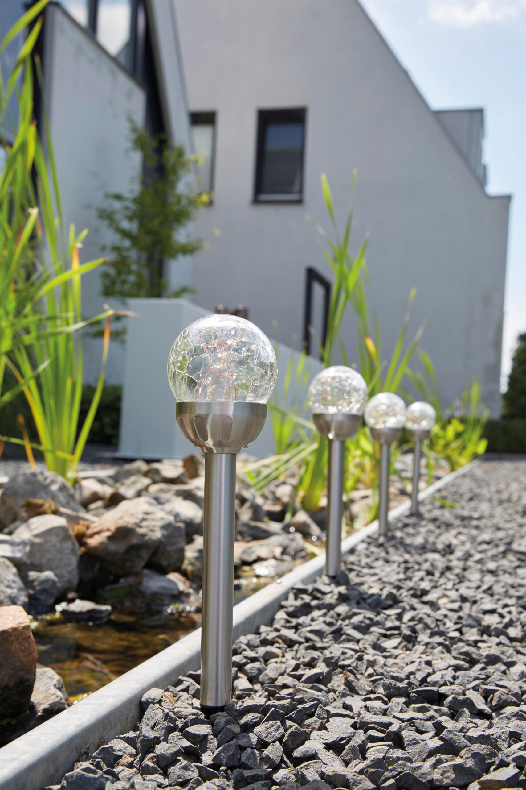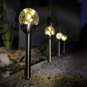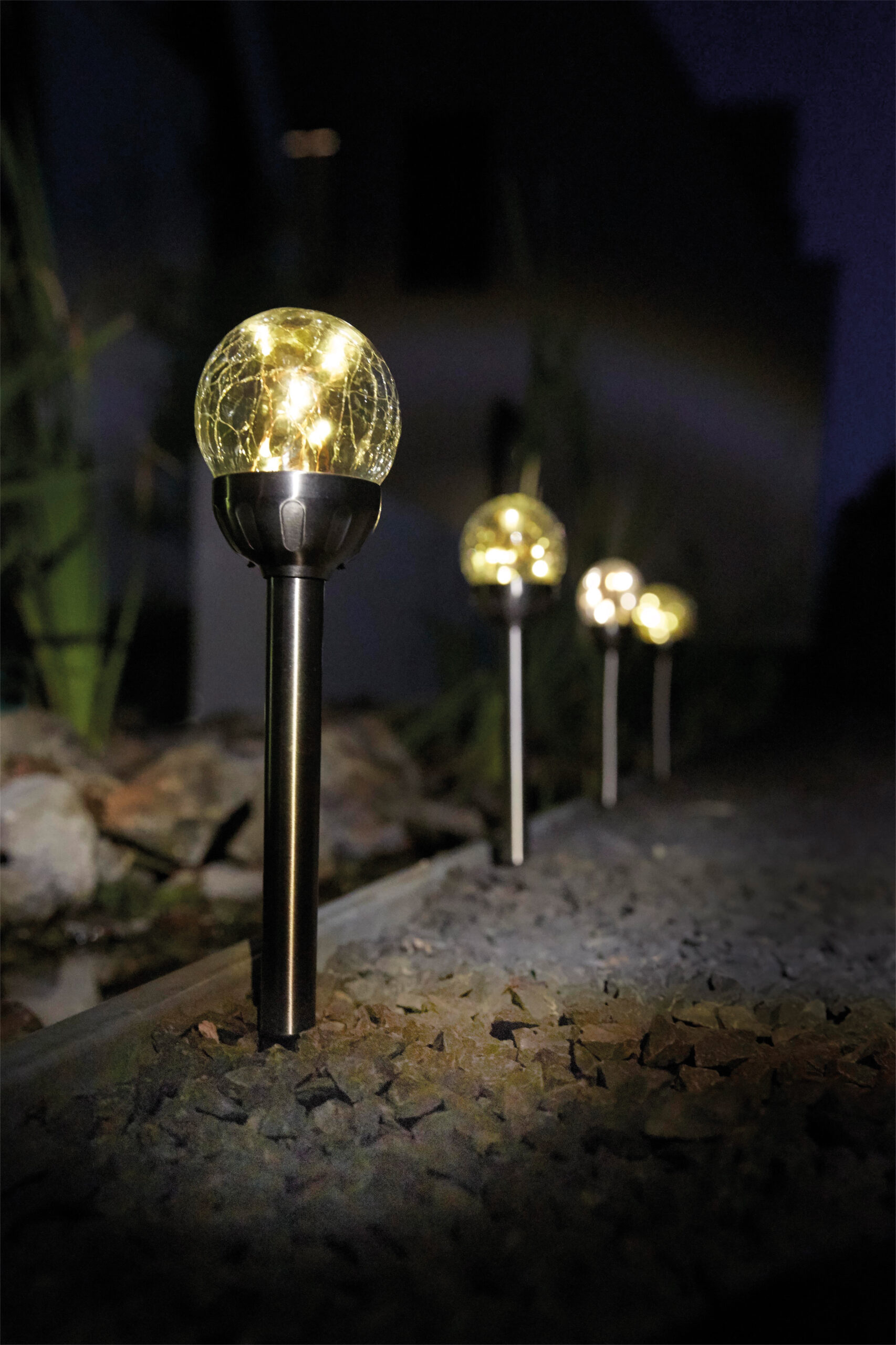Decorate your outdoor living space even in remote areas by placing these stylish lights in a sunny spot, they will enhance the look and feel of any garden. This solar light is made from durable stainless steel and can also be used to provide ambient light sufficient to illuminate paths, borders and driveways etc. The light has auto sensor and an integral solar panel. This attractive IP44 rated energy saving LED Solar spike light uses the integral solar panel to recharge the AA battery throughout daylight hours using free energy from the sun, once charged it will provide up to 8 hours of light. When dusk falls, the light will automatically turn on and turns off again at dawn. Easy to install with no wiring required, just use the supplied spike and push into the ground!