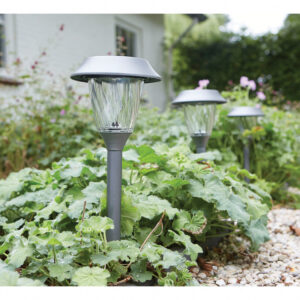 Decorate your outdoor living space even in remote areas by placing these stylish lights in a sunny spot, they will enhance the look and feel of any garden. This solar light is made from durable stainless steel and can also be used to provide ambient light sufficient to illuminate paths, borders and driveways etc. The light has an integral solar panel. This attractive IP44 rated energy saving LED Solar spike light uses the integral solar panel to recharge the AA battery throughout daylight hours using free energy from the sun, once charged it will provide up to 8 hours of light. When dusk falls, the light will automatically turn on and turns off again at dawn. Easy to install with no wiring required, just use the supplied spike and push into the ground!