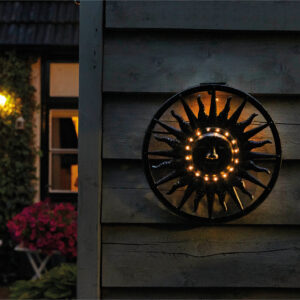 This Solar Sun LED wall ornament from Luxform is the perfect complement for your garden or patio area, in fact any wall of your garden. This solar lamp featuring 17 warm white LED light and a sun-shaped design, is undoubtedly an eye-catcher! It works by taking the energy directly from the sun. The lamp has a high-tech solar collector plate that converts sunlight into electrical energy. The energy is stored in a very powerful rechargeable battery that powers the lighting fixture at night.