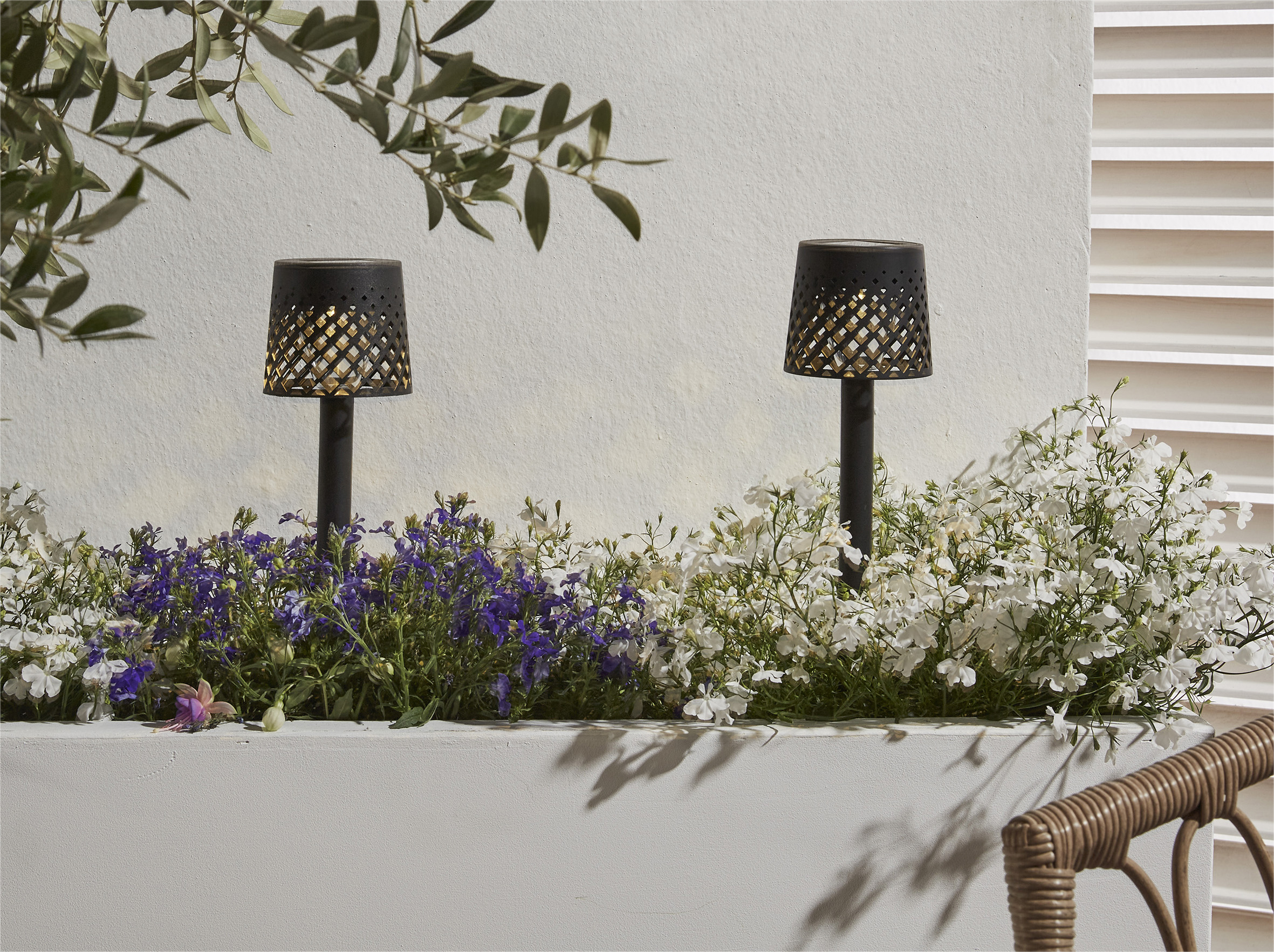 The Manacor solar stake light from Luxform impresses with its classic design that adapts to the most varied outdoor designs. Its pleasant warm white light can accompany the entrance path to the home or the boarders in your garden. In addition, this outdoor lamp has a solar panel with battery, so it does not consume electricity and is kind to the environment. The design of the “Manacor” creates a very charming play of light around the lamp. A real eye-catcher for the garden! Would you like to mark entrances, hallways, or steps? Then place the “Manacor” next to steps, along the lawn or in a garden pot. The base of the lamp is a stake, so you can place it very easily in the ground or in a pot. The solar panel is located on the top of the lamp. The light sensor turns on the lamp when it gets dark. This allows you to enjoy ambient lighting in the garden all night long.