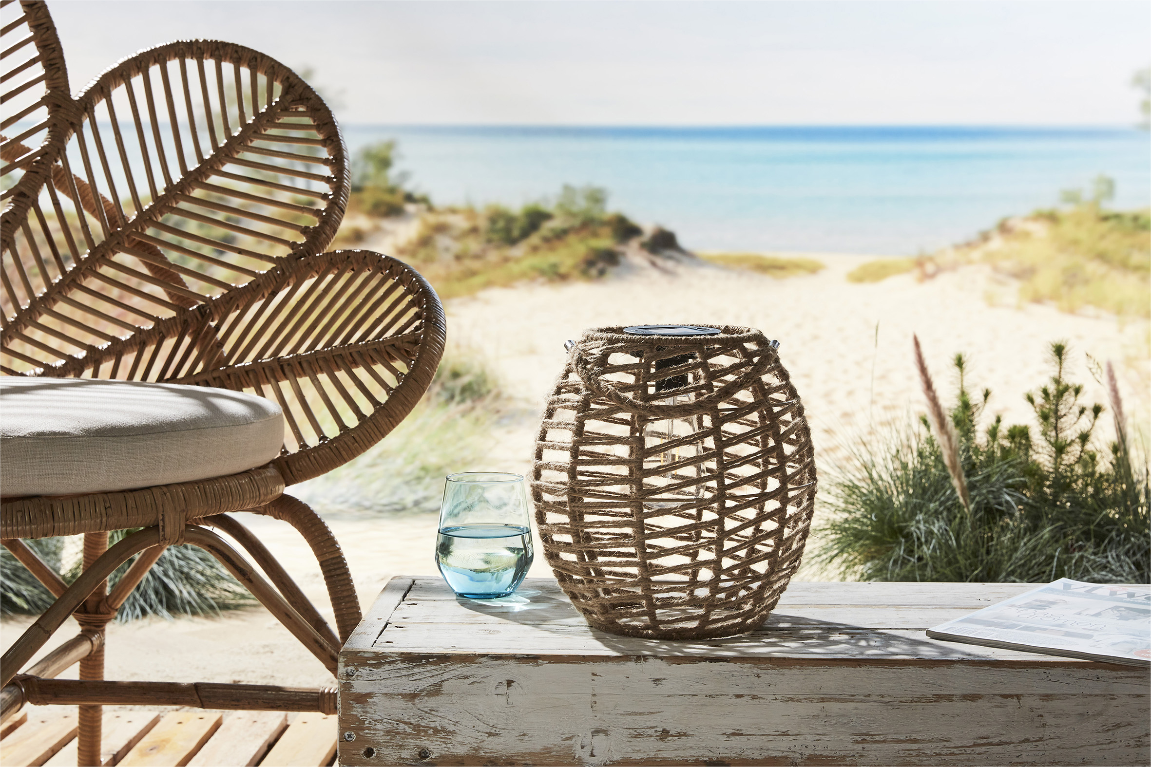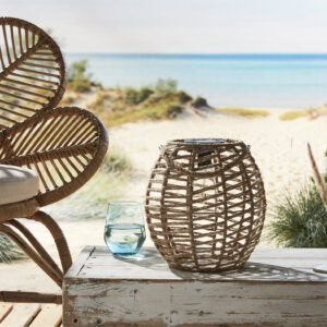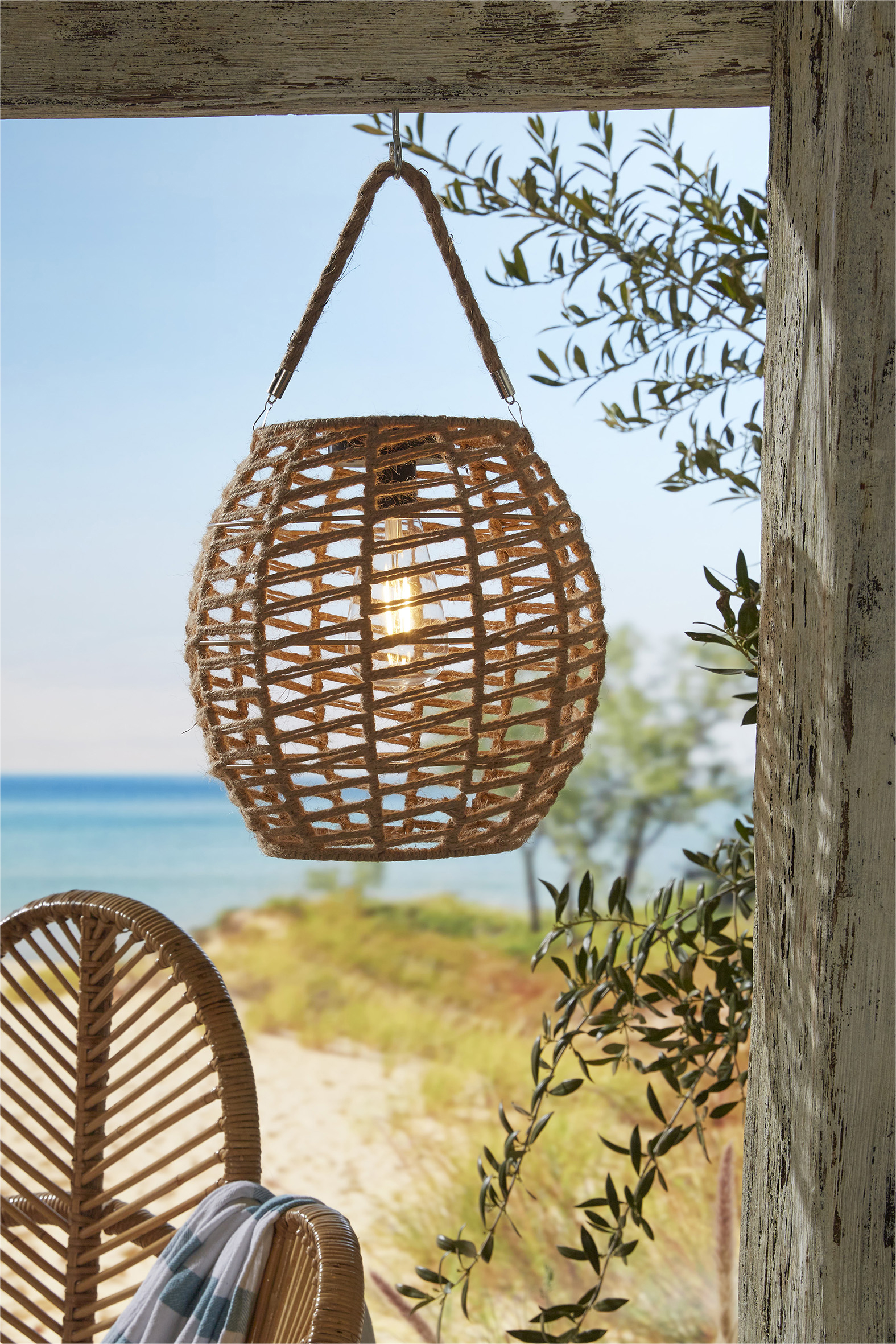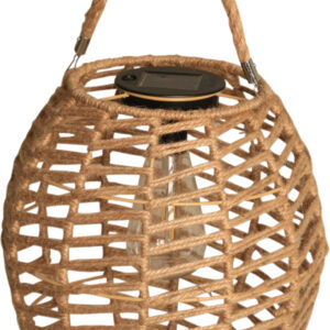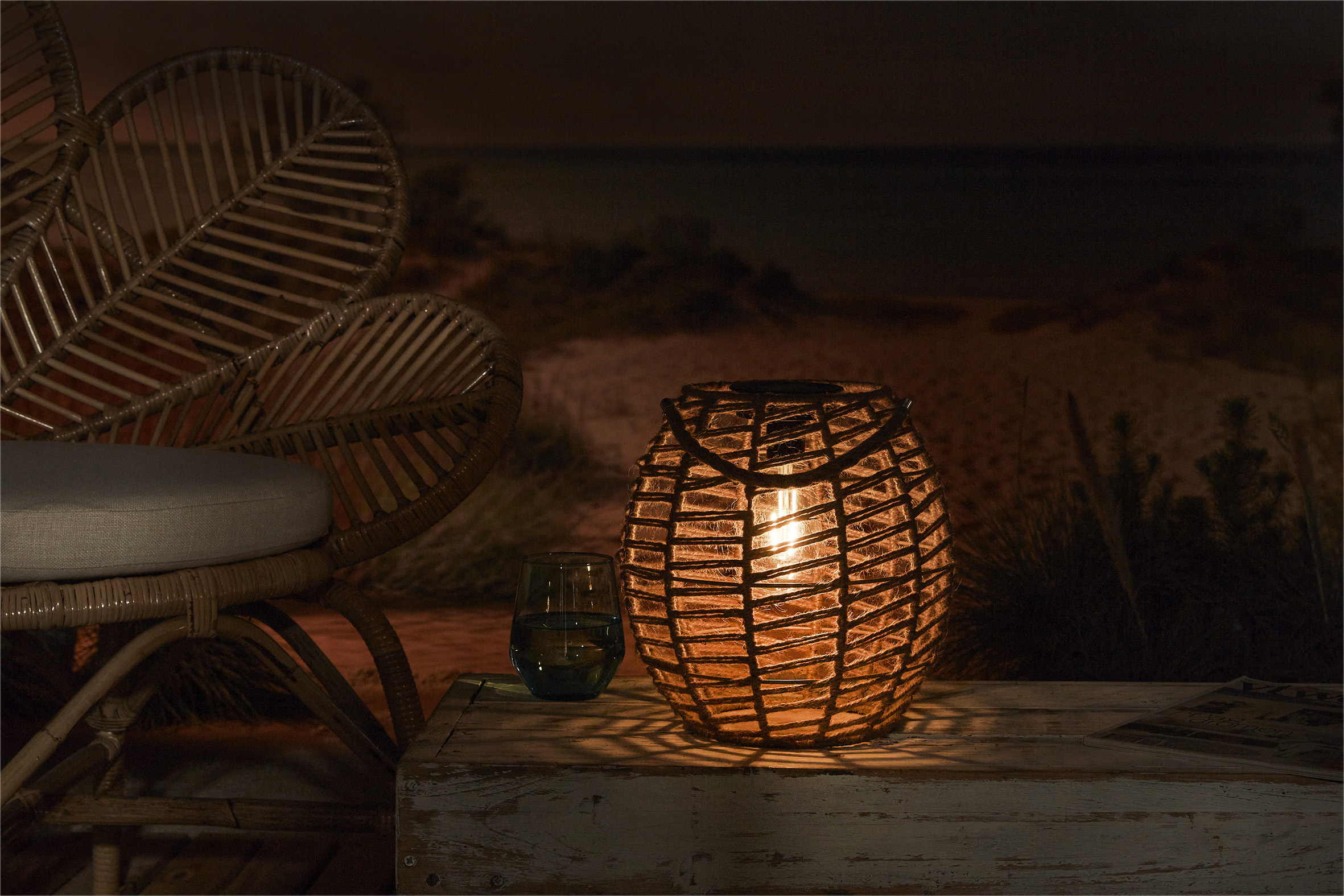 This “Tortoli” table lamp by Luxform is a perfect addition to a garden or side table. The lamp is crafted from metal and features 1 warm white filament LED. The natural shade of the rope creates an Ibiza style in your garden. The handle makes it easy and quick to move or hang the lamp. Place this Solar lamp in a sunny spot to enjoy an atmospheric garden in the evening. In the evening, the line structure of the rope creates a unique shadow play. Thanks to its compact size of 25x25x25.5 (cm), you can always find a nice spot for this Solar lamp.
