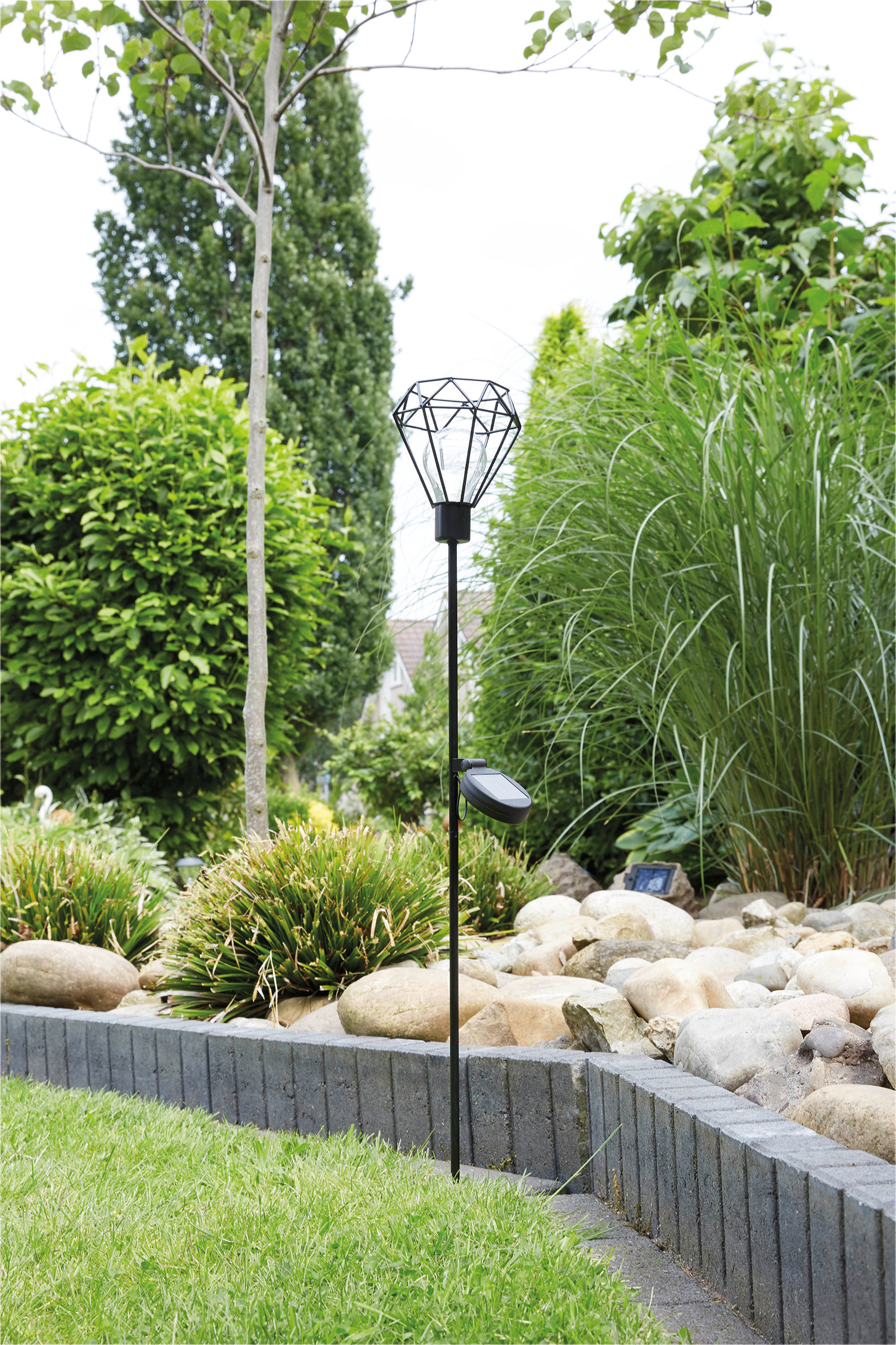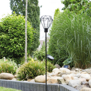 The Solar Diamond metal wire lamp from Luxform brings a nice, cosy atmosphere to any garden or patio area. The lamp only needs enough sunlight to illuminate the glass ball in the evening. The lamp is made of metal, has a plastic bulb and is easily inserted into the ground thanks to the ground spike. You can put lamps in flowerbeds, along garden paths and all around the terrace. The lamp also fits into flower pot or planters. During the day you can enjoy the brilliance and in the evening the comfort of the lamp.