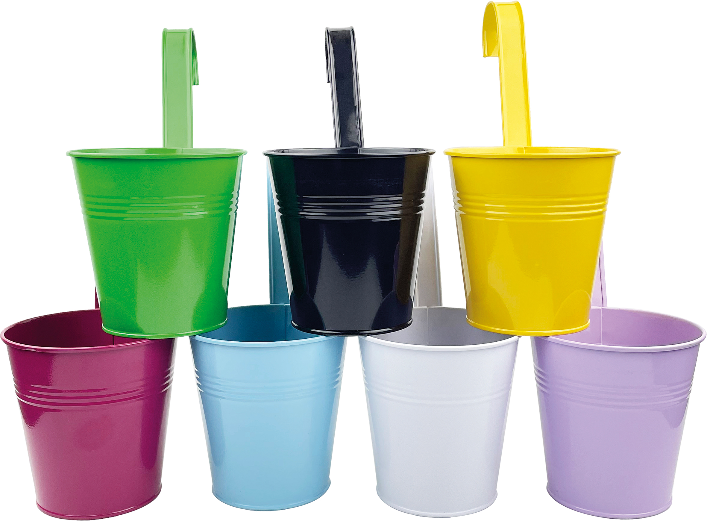 Display your plants and flowers on fences, walls, balconies and railings, also perfect for growing herbs. Ideal for smaller gardens or flats. Run out of space on the ground, no problem, simply hang your flowers in these vibrantly coloured pots. Made from high quality metal and designed to withstand the rigours of outdoor use.