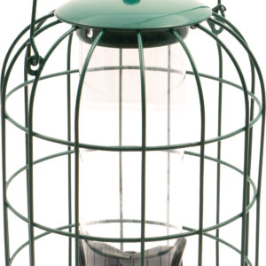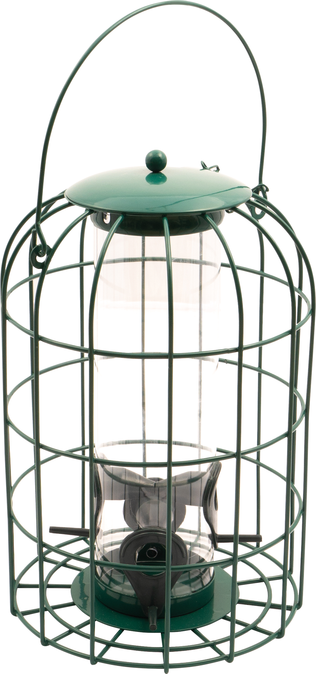 This bird feeder with squirrel guard from St Helens Home;; Garden is designed to deter squirrels at the same time as allowing smaller birds to feed. The metal hanging loop allows you to hang the feeder from trees or other structures giving you the perfect vantage point from which to view the birds visiting your garden. The lid at the top opens to allow you to easily fill the feeder with nuts and seeds whilst also helping to keep the food clean and dry. The feeder has 4 points at which the birds can feed with a perch at the base of each point. The Powder coated finish provides resistance from the elements.